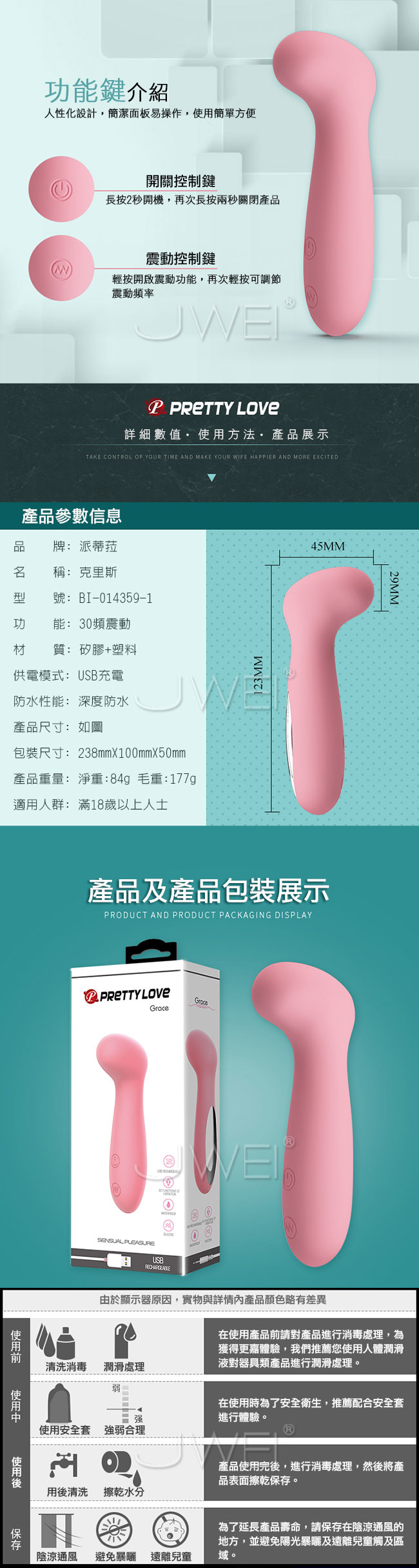 Pretty Love.克里斯Grace 30段變頻USB充電防水情趣按摩棒