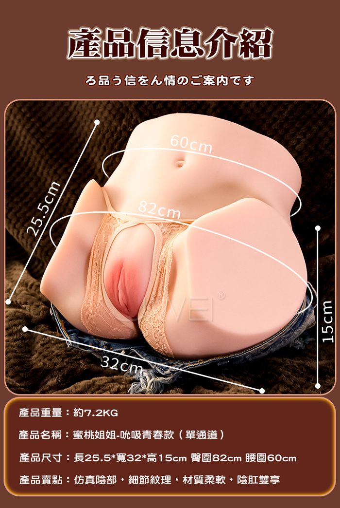 蜜桃姐姐 ‧極の屄 模擬皮膚細紋復刻倒模 (智能加溫/3段夾吸吮/7頻震動/四國語音呻吟)附贈日本製金のローシ潤滑液120ML+耳機