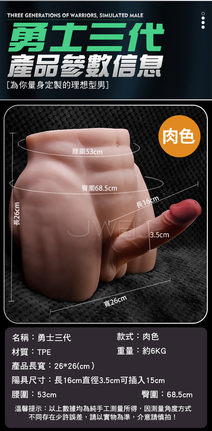 勇士三代,仿真坐愛猛男,活动龍骨真肌肉感