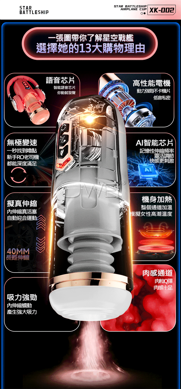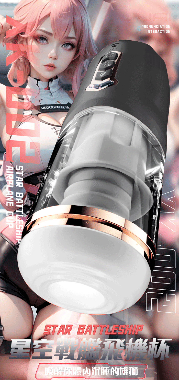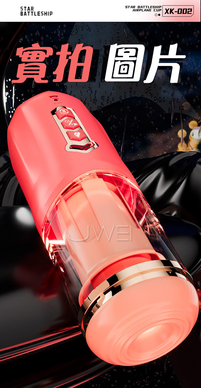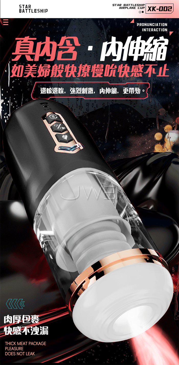 星空戰艦.女上位 真內含/內伸縮 全自動伸縮吸夾吞吐自慰杯 ﹝四國語音呻吟+智能加溫+耳機+USB充電﹞黑色