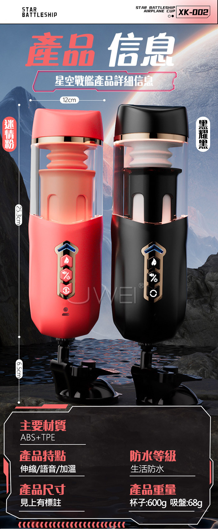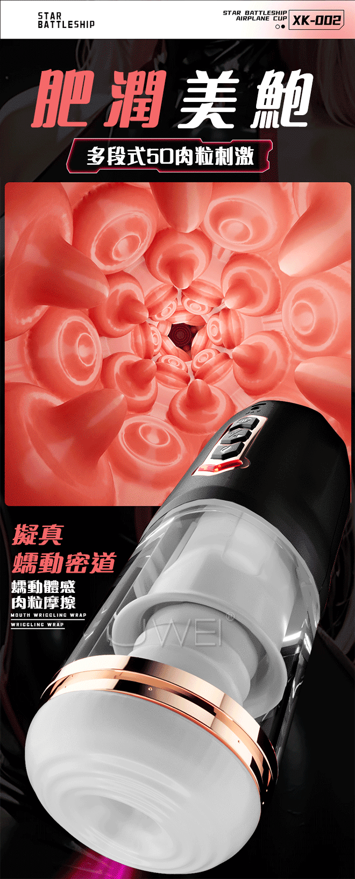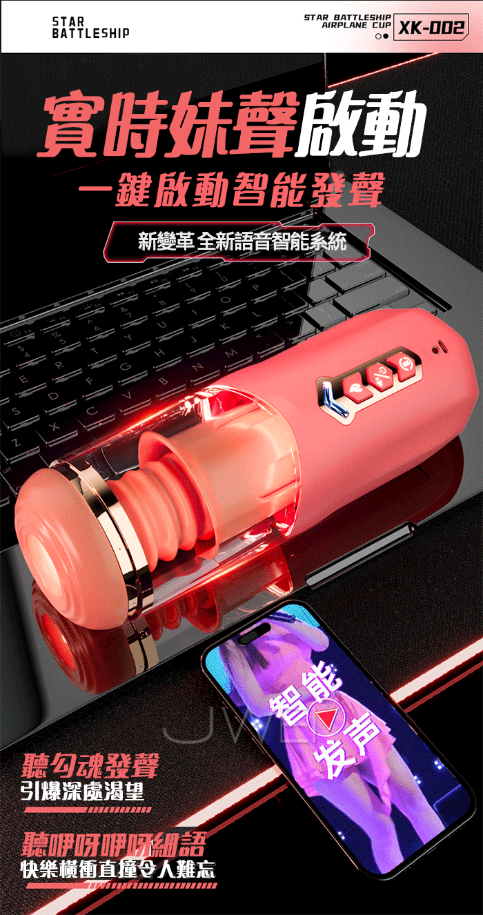 星空戰艦.女上位 真內含/內伸縮 全自動伸縮吸夾吞吐自慰杯 ﹝四國語音呻吟+智能加溫+耳機+USB充電﹞黑色