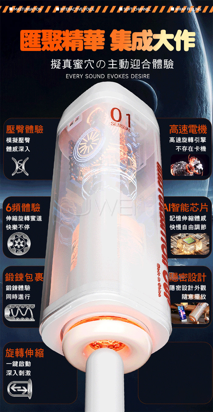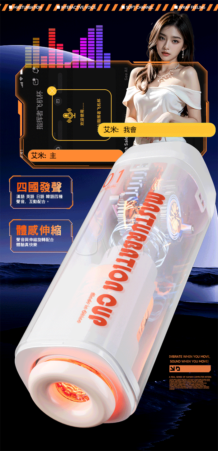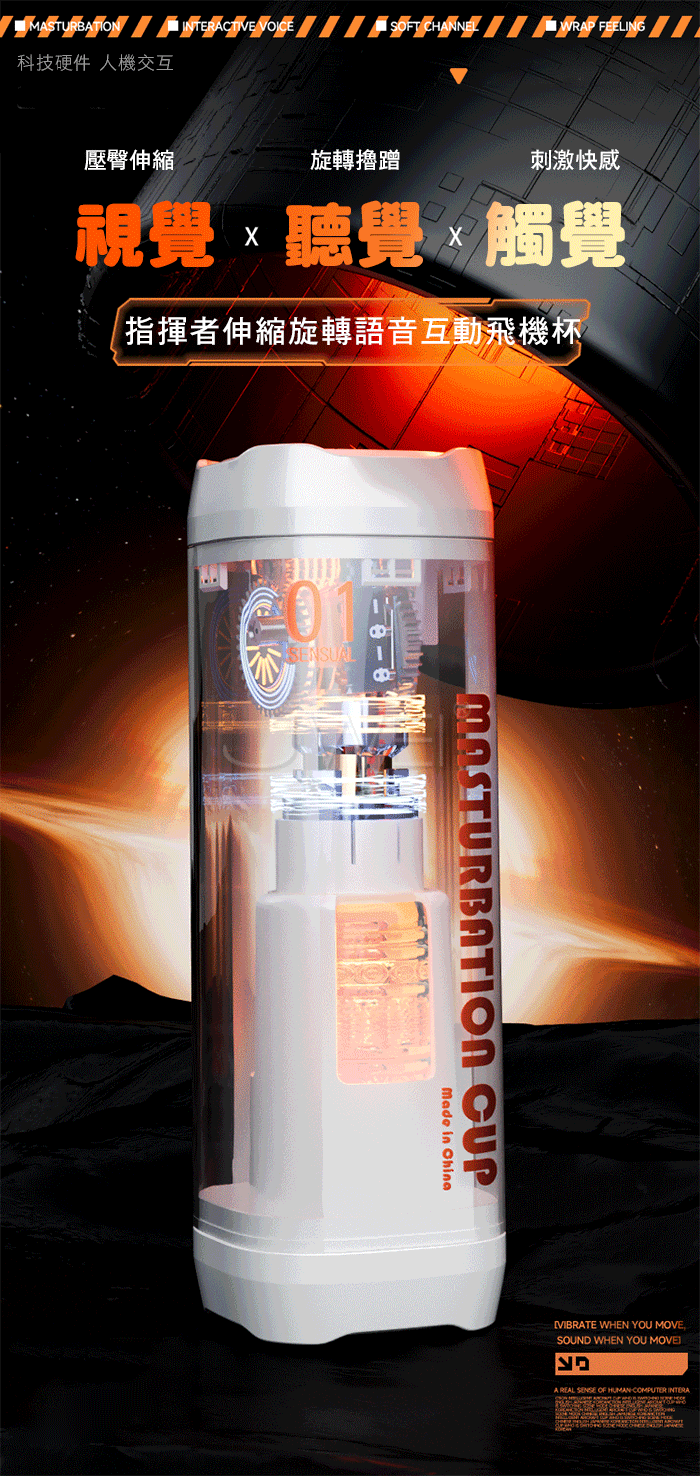 視覺 x 聽覺 x 視覺,伸縮旋轉語音互動飛機杯