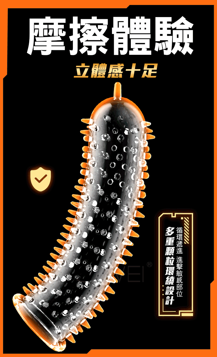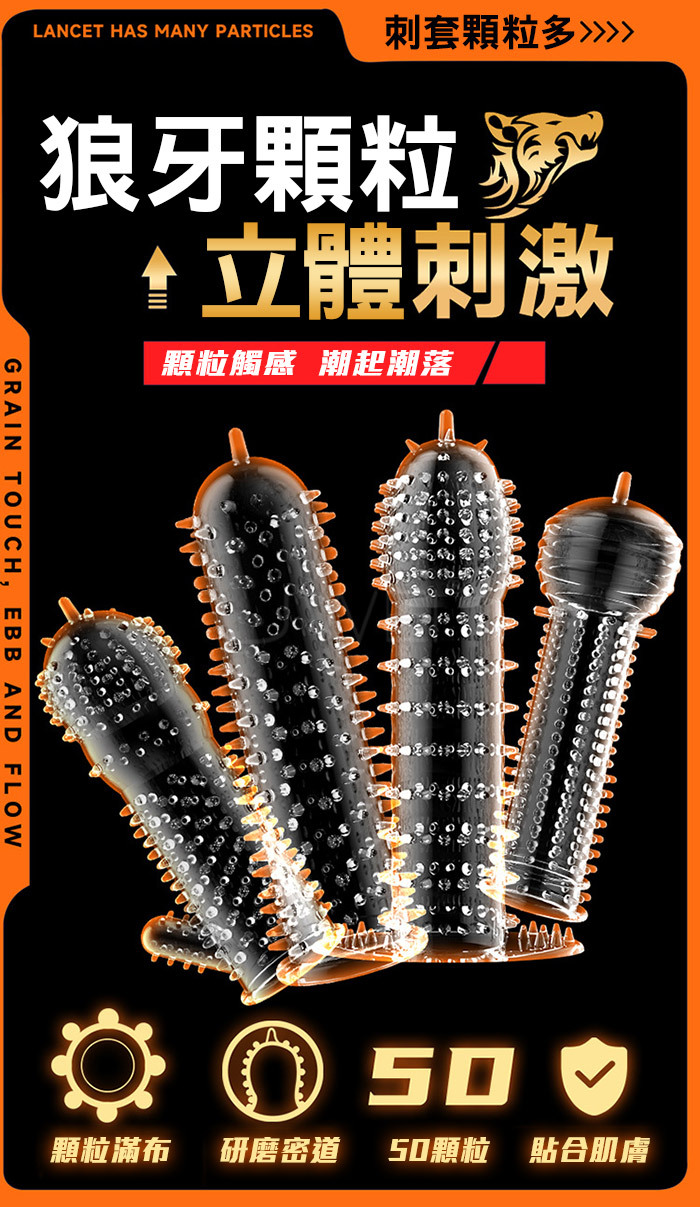 狼牙顆粒立體刺激,顆粒觸感潮起潮落,摩擦體驗立體感十足,多重顆 粒環繞設計,循環遞進,進擊敏感部位,炫動摩擦凸點刺激,每一次進 入,肉粒刮蹭快樂起飛!