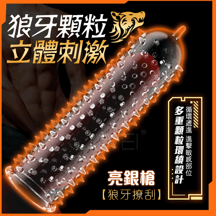 狼牙套.男用陰莖穿戴空心水晶套-亮銀槍