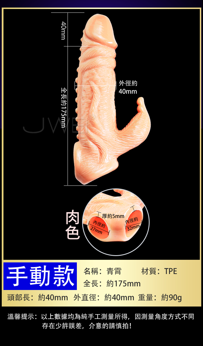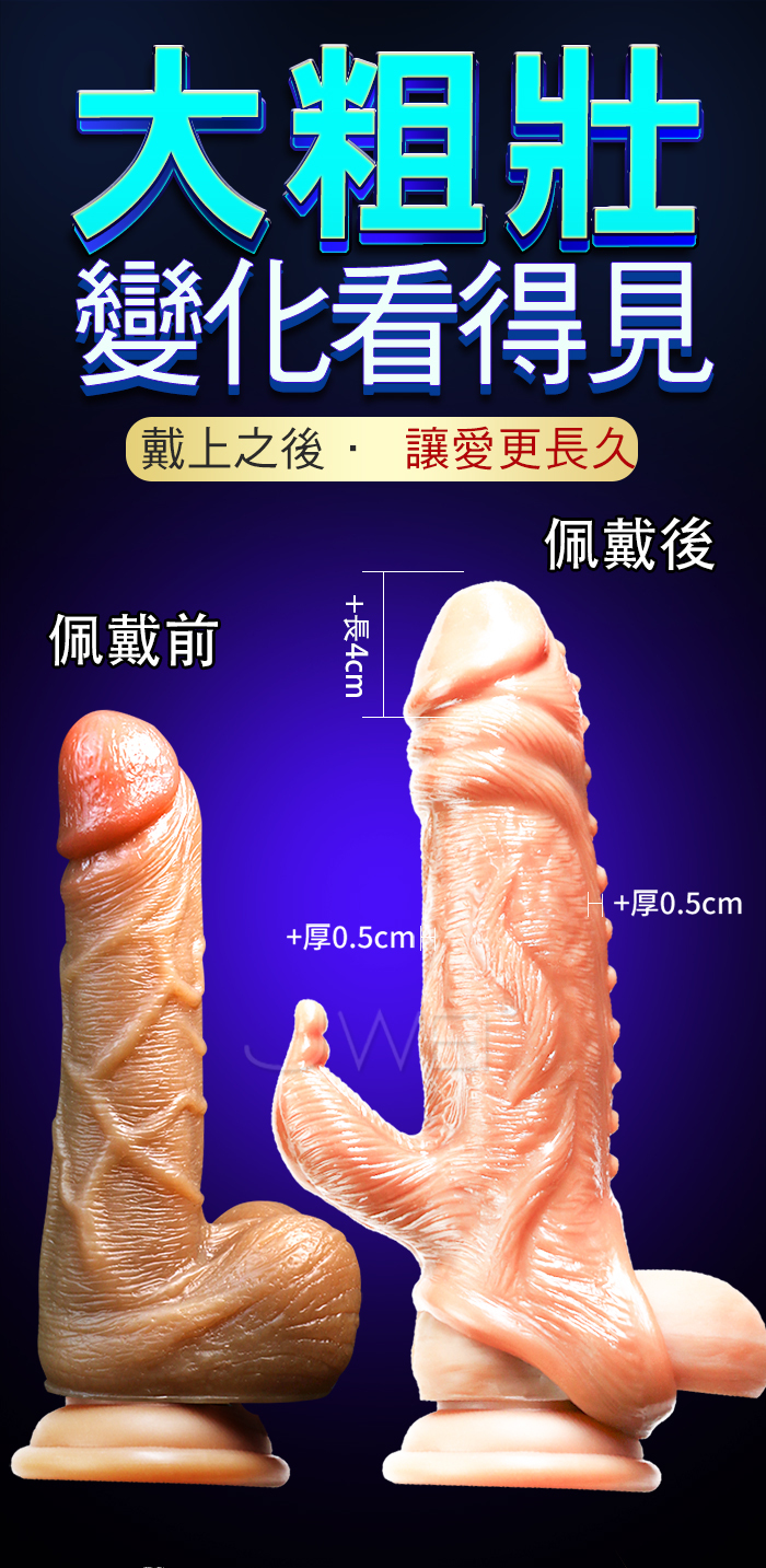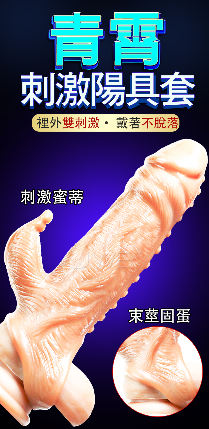 青霄.頂觸蜜蒂 仿真經脈紋路 整排肉粒 加長加粗刺激套【肉色】