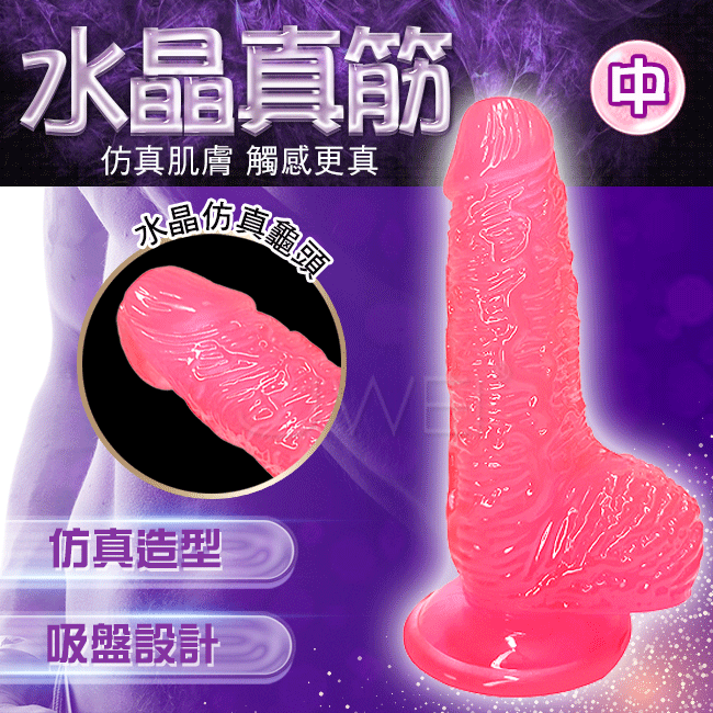 PINK水晶果凍粉紅陽具 ‧ 仿真經絡肉感吸盤蛋蛋老二棒-中號 可另搭配穿戴褲
