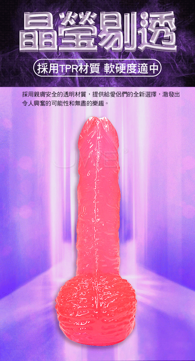 水晶真筋,仿真肌膚,觸感更真;晶瑩剔透,採用TPR材質 軟硬度適中;柔軟通透,柔軟有韌性 拿捏自如;凸起經絡,飽滿肉感 ,更真更刺激;不同的大小尺寸任君選擇,底部還設計有吸盤底座,可吸於牆上、桌上,任何的光滑表面;多種玩法任你玩,讓你性愛過程更有樂趣喔~