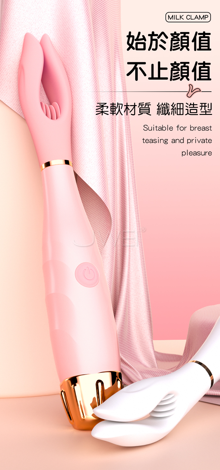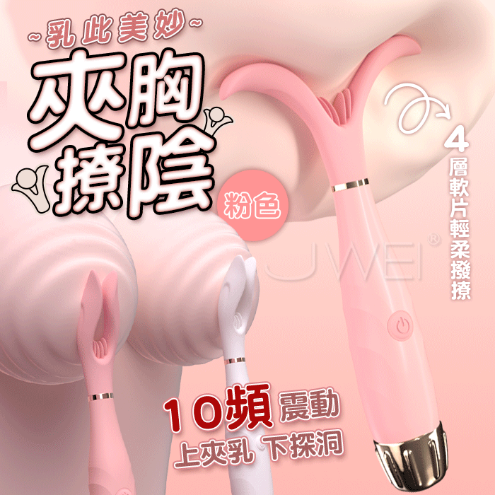乳陰震動棒.上夾乳下探洞10段變頻多功能刺激棒-粉色