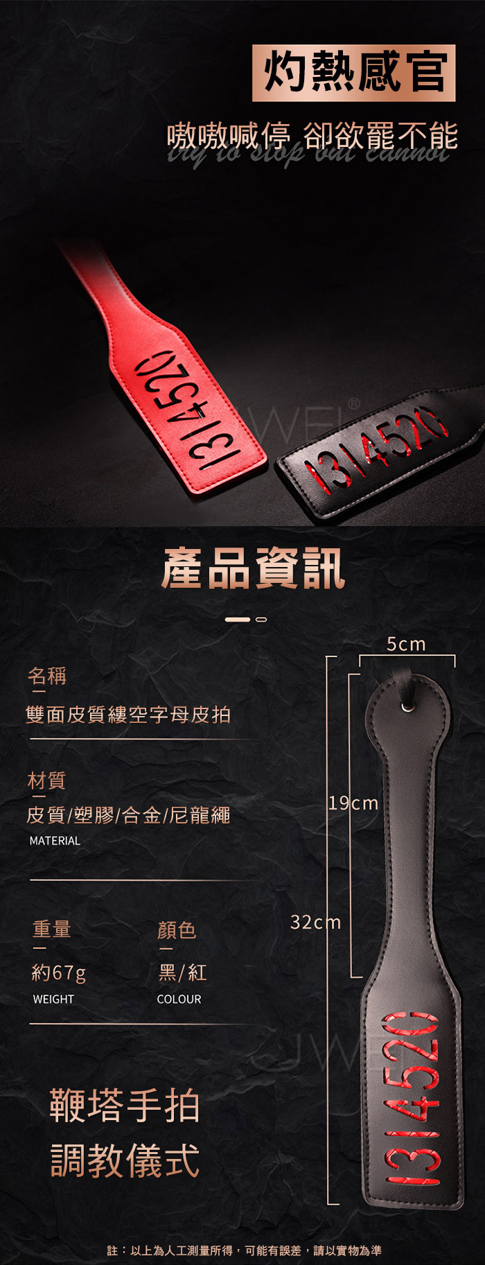 雙面皮質縷空字母皮拍,SM玩家前戲調情的必備工具,最極致的感官剌激 ,挑起你的性慾用於性愛行動中,體驗不一樣的情趣........