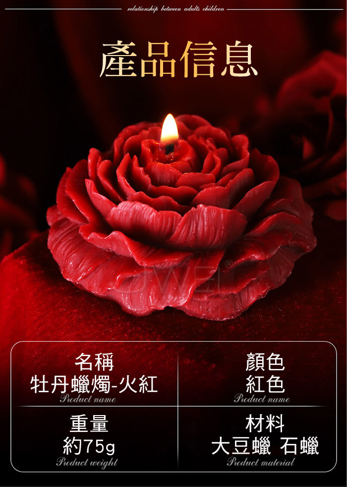 SM. 低溫蠟燭 夫妻伴侶遊戲氛圍輔助調教道具 -牡丹花(42度低溫)