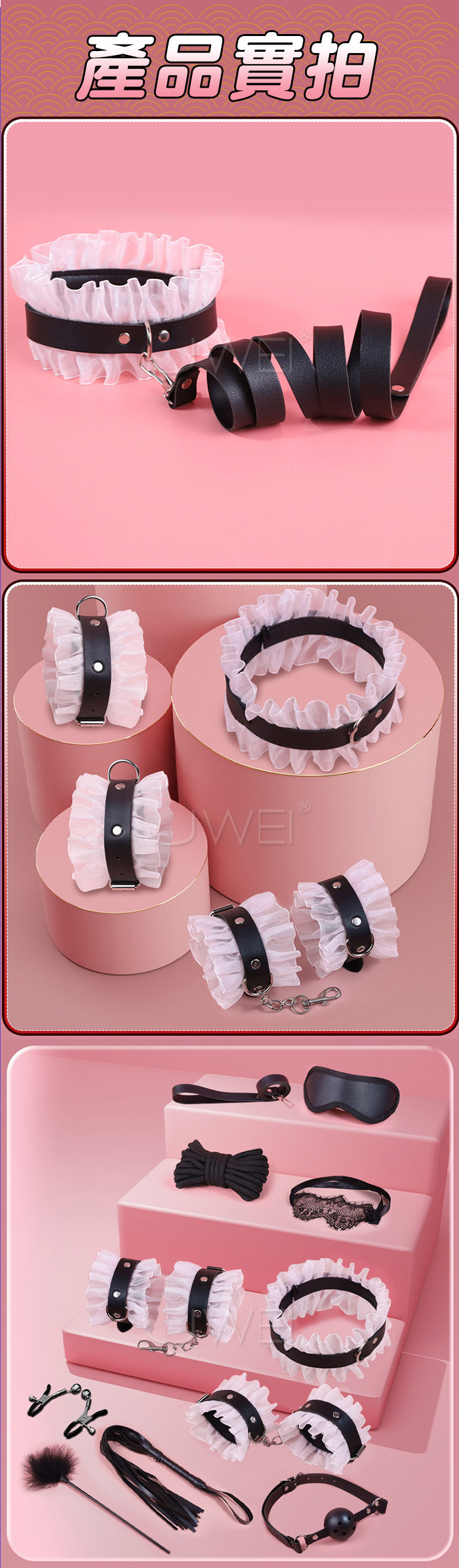 SM閨房情趣.女僕蕾絲十件套皮革捆綁調情用品-白色