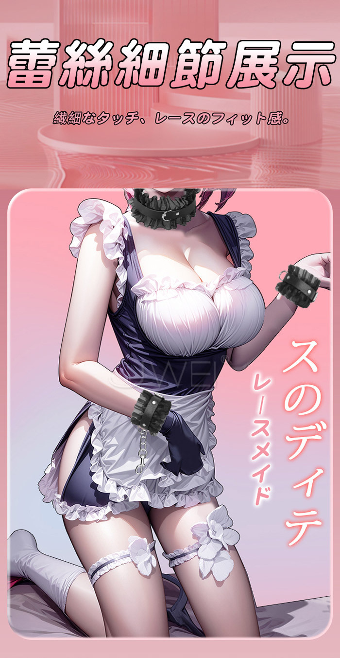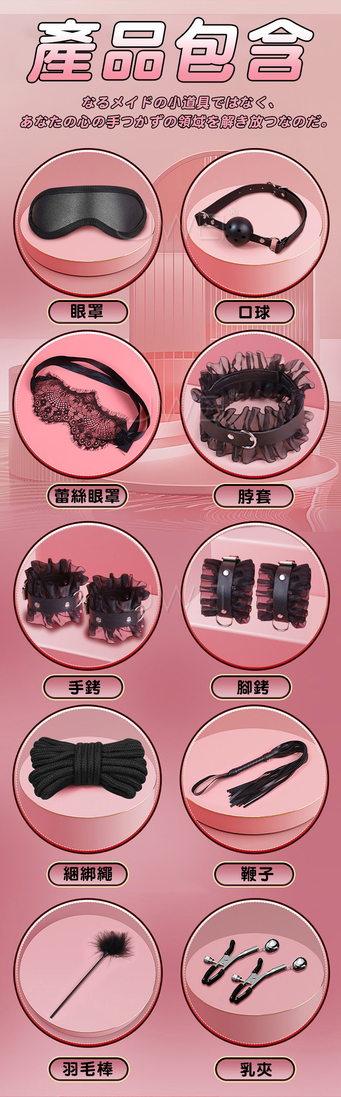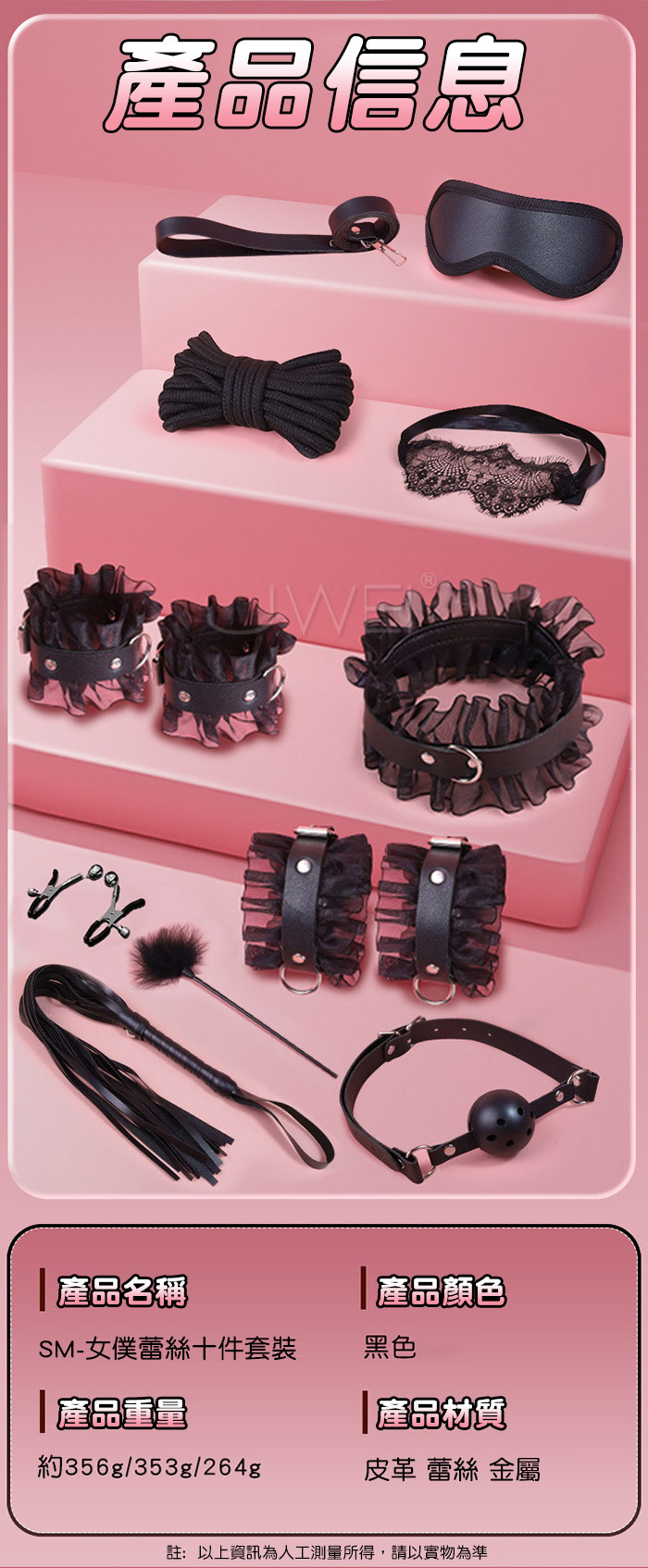 SM閨房情趣.女僕蕾絲十件套皮革捆綁調情用品-黑色