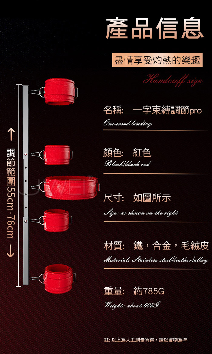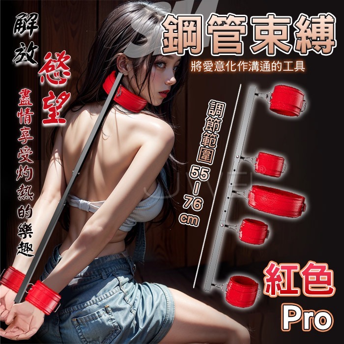 SM閨房情趣.一字束縛調節鋼管-PRO紅色