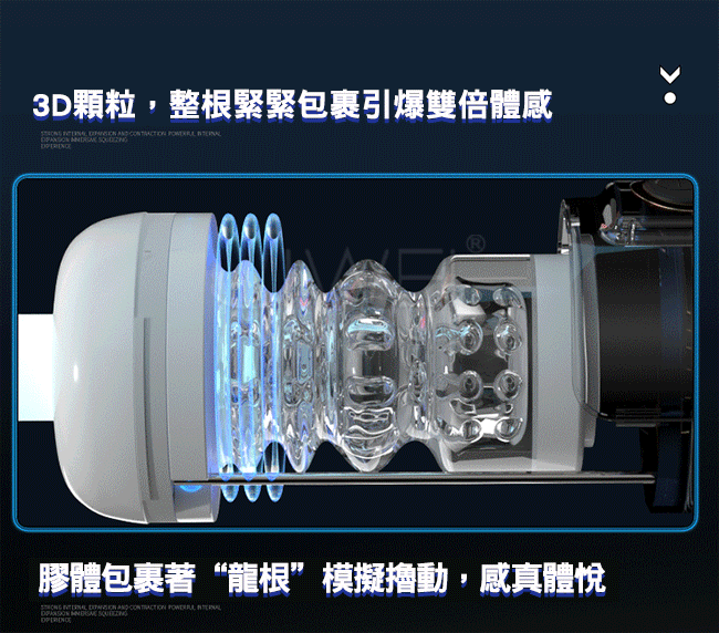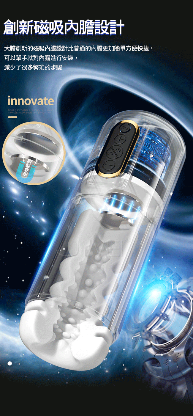 黑洞內核 爆榨來襲!3D顆粒,整根緊緊包裹引爆雙倍體感,膠體包裹著“龍根”模擬擼動 ,感真體悅;黑科技芯片智控 ,高速馬達, 強勢包裹花樣榨汁 澎湃動力加持;3重爆榨 來襲, 慢玩鍛煉、進階之路 、狂野爆榨,多重快感刺激,勢必榨乾最後一滴!緊緻Q軟顆 粒蜜道,鮑粒分明擠壓刺激,柔韌性強、不怕拉扯;創新磁吸內膽設計,大膽創新的磁 吸內膽設計比普通的內膽更加簡單方便快捷, 可以單手就對內膽進行安裝,減少了很多 繁瑣的步驟;性感喋喋女聲,如同真人在耳邊呢喃,徹底激發內心慾望!