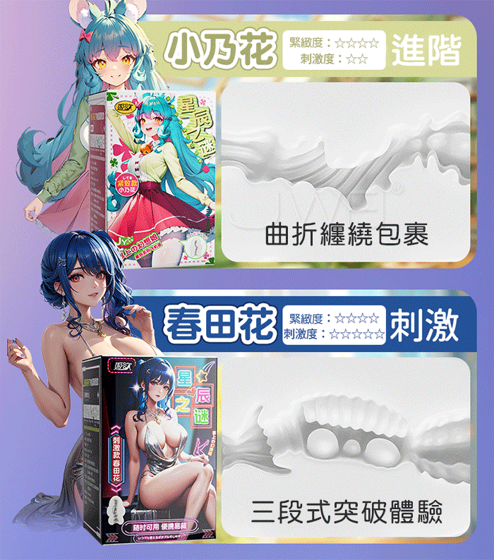 星辰之謎 掌上の幻想娘,高能組合各不相同,任你選擇採用高度仿肌肉感的材質,精製厚達6mm的飽滿肉壁,還原更真實的刺激體驗。