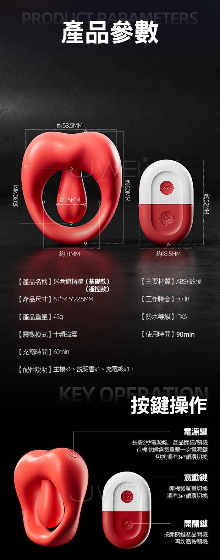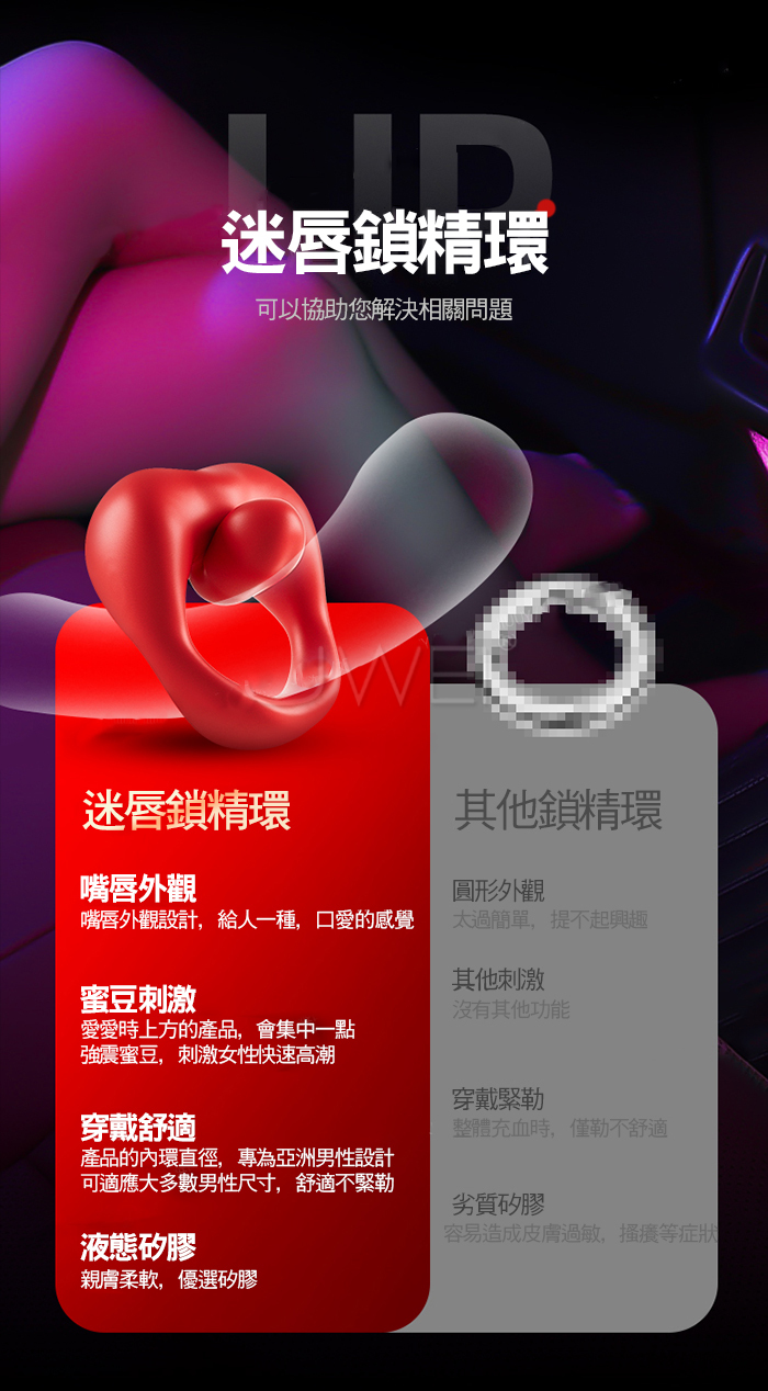 迷唇.電動鎖精環 10頻強震 男女同爽 鎖精加時【基礎款】