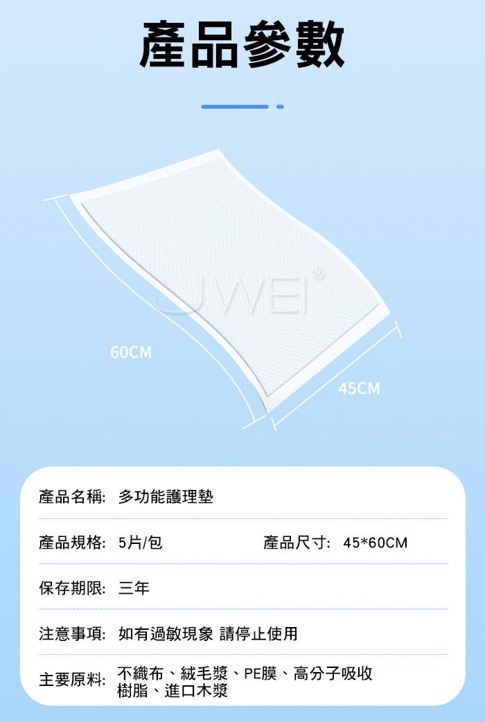 隔離墊.PE隔層防止液體下滲 多功能護理墊-5片裝