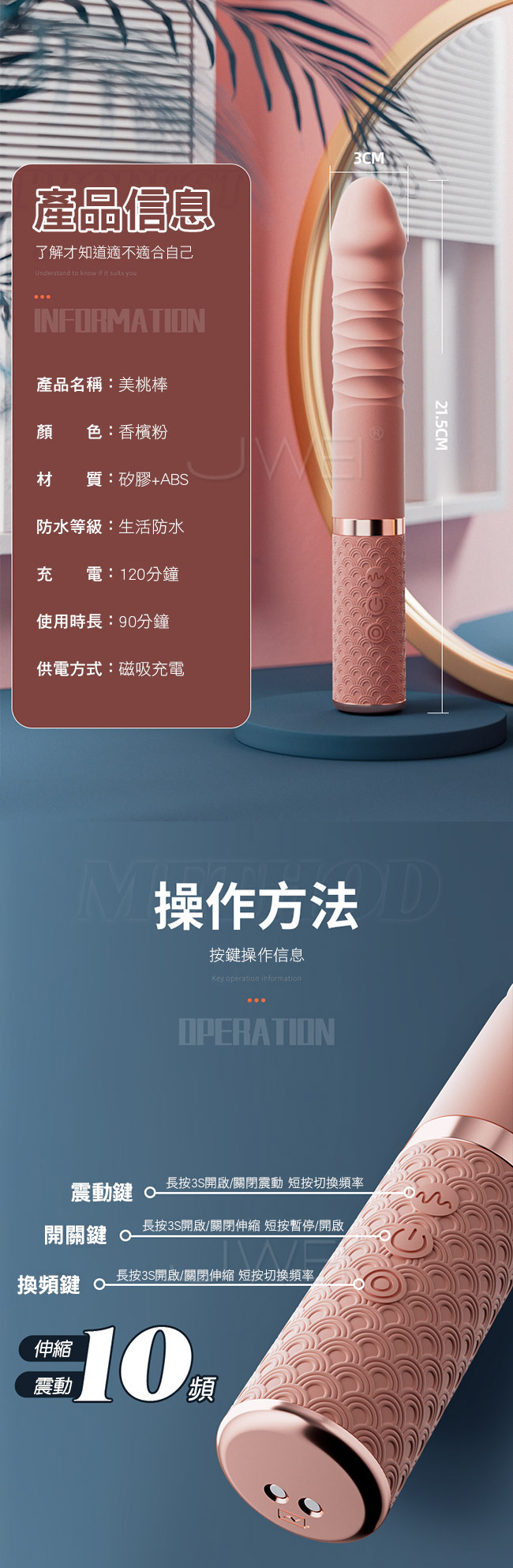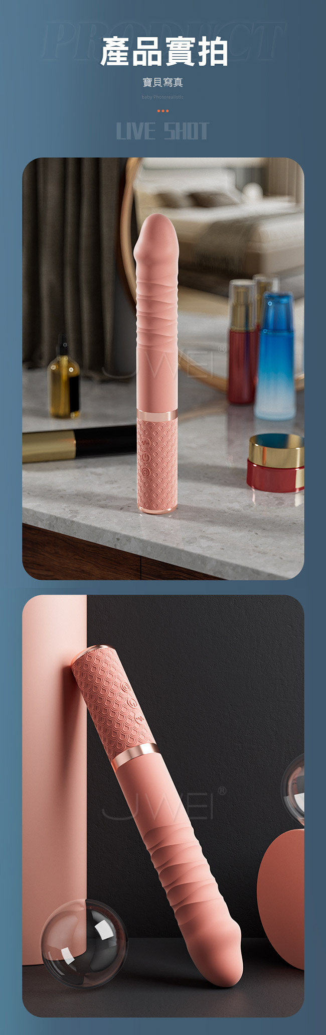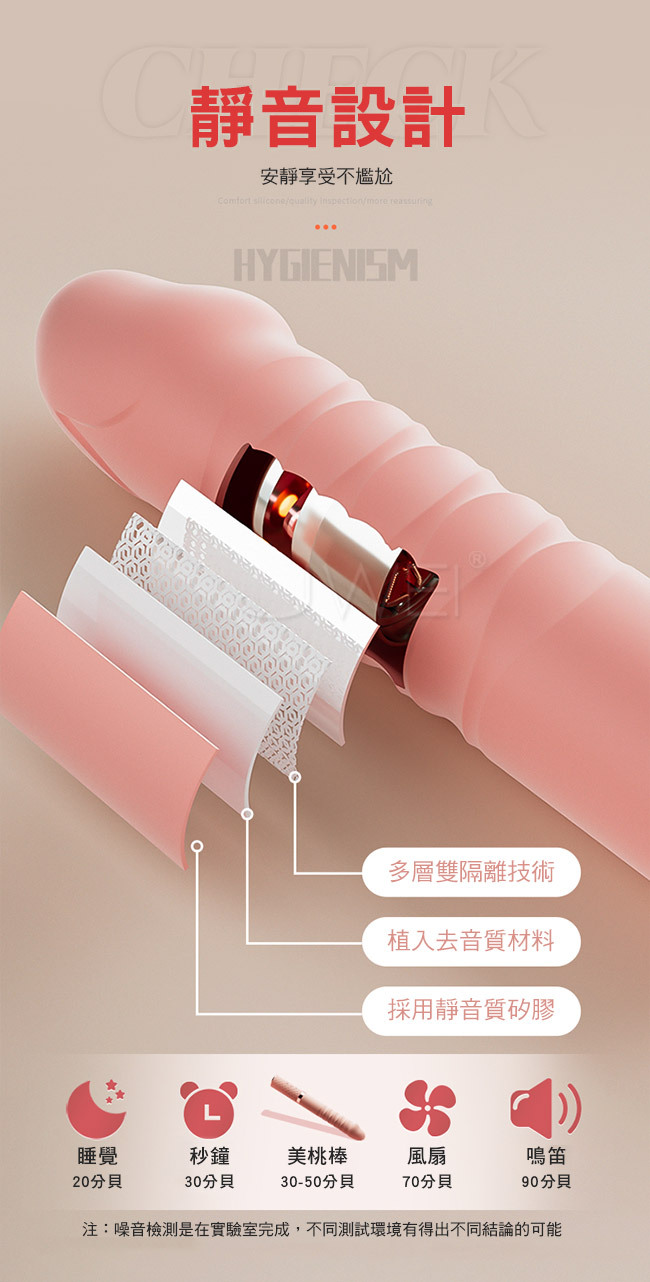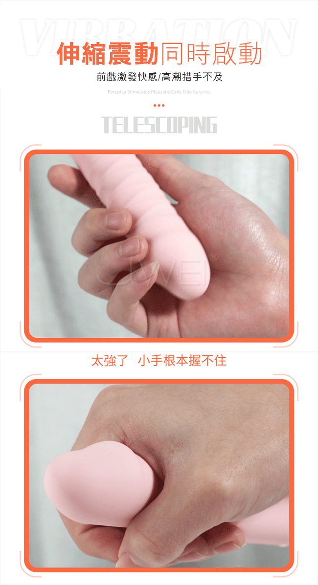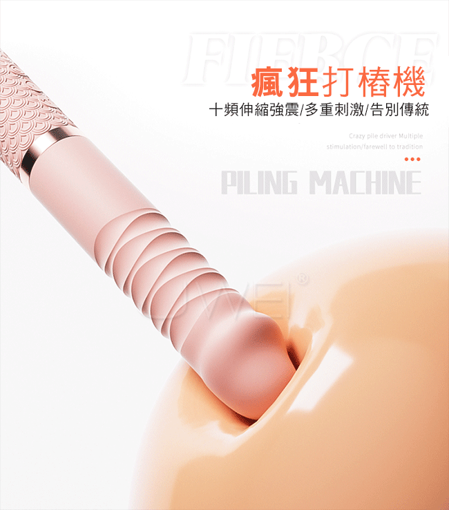瘋狂打樁機,十頻伸縮強震,多重刺激;伸縮震動同時啟動,前 戲激發快感,高潮措手不及;瘋狂伸縮,強力脈衝震動,酥麻全 身,聚焦深度高潮;有機矽膠母粒,舒適柔軟,細膩絲滑的舒適 感;靜音防水,多層雙隔離技術,植入去音質材料,採用靜音質 矽膠,安靜享受不尷尬。