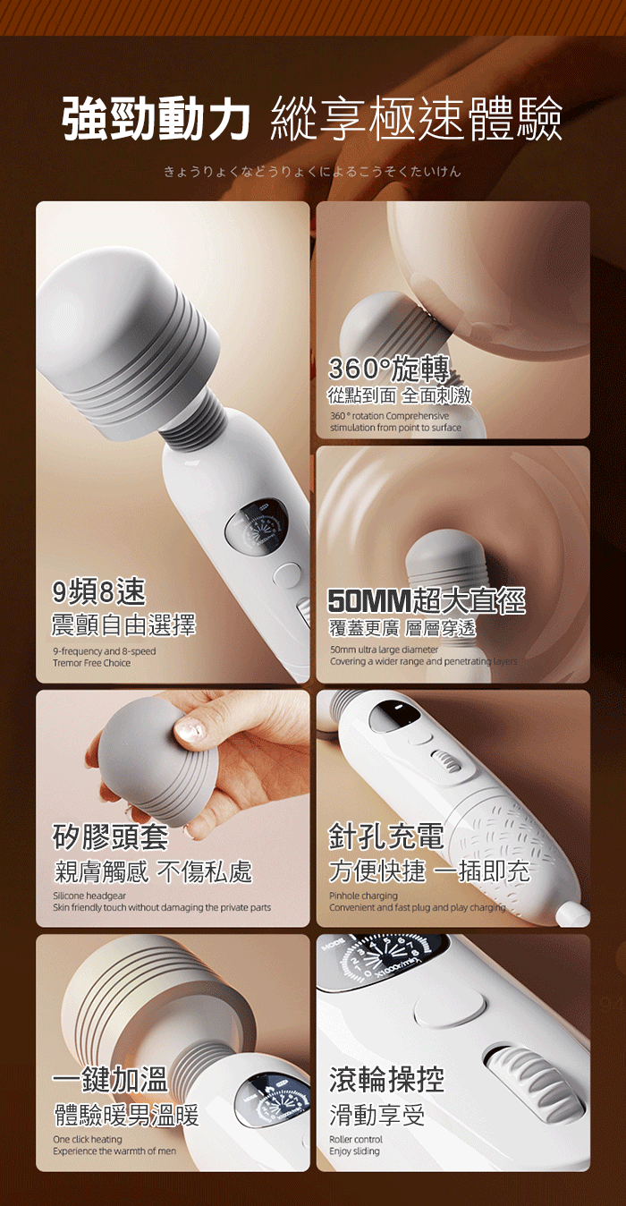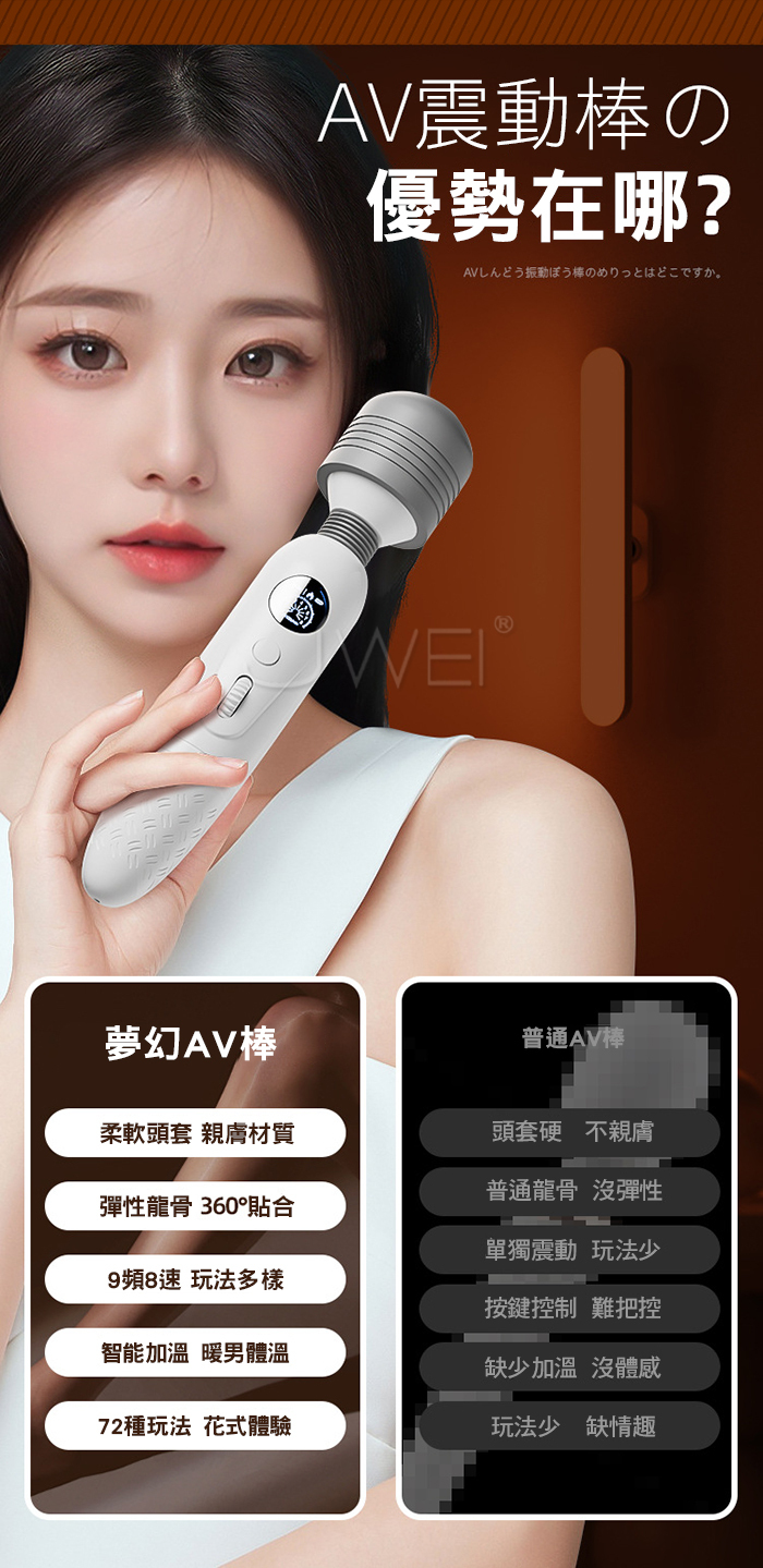 夢幻AV棒.加溫震動AV按摩棒 9段變頻+8速轉速縱享極速滾輪式 USB充電【加溫款】