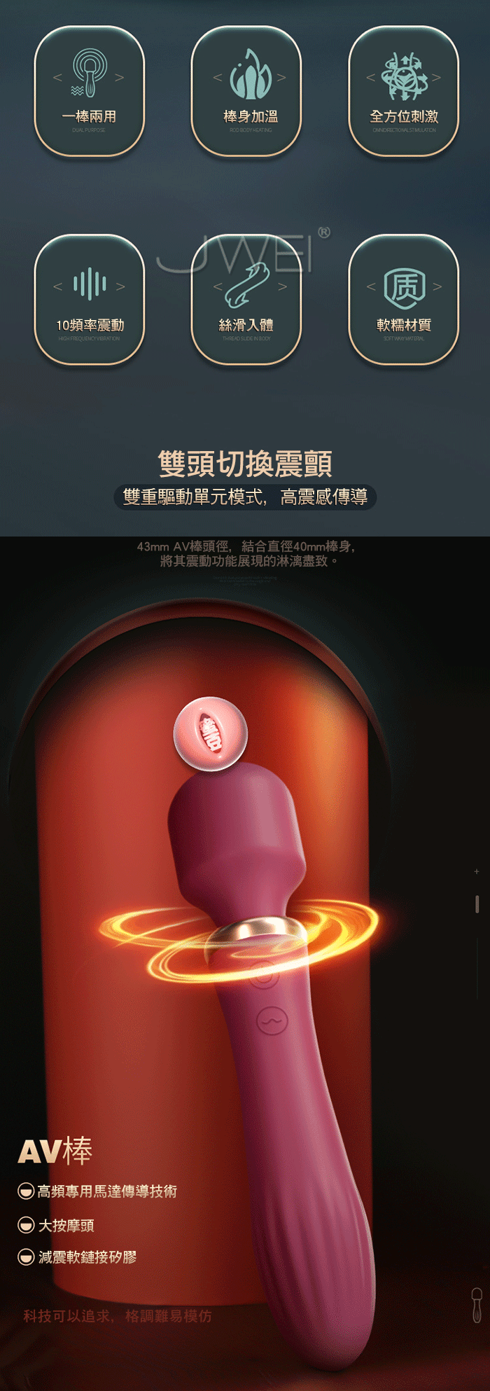 43mm AV棒頭徑, 結合直徑40mm棒身,將其震動功能展現的淋漓盡致