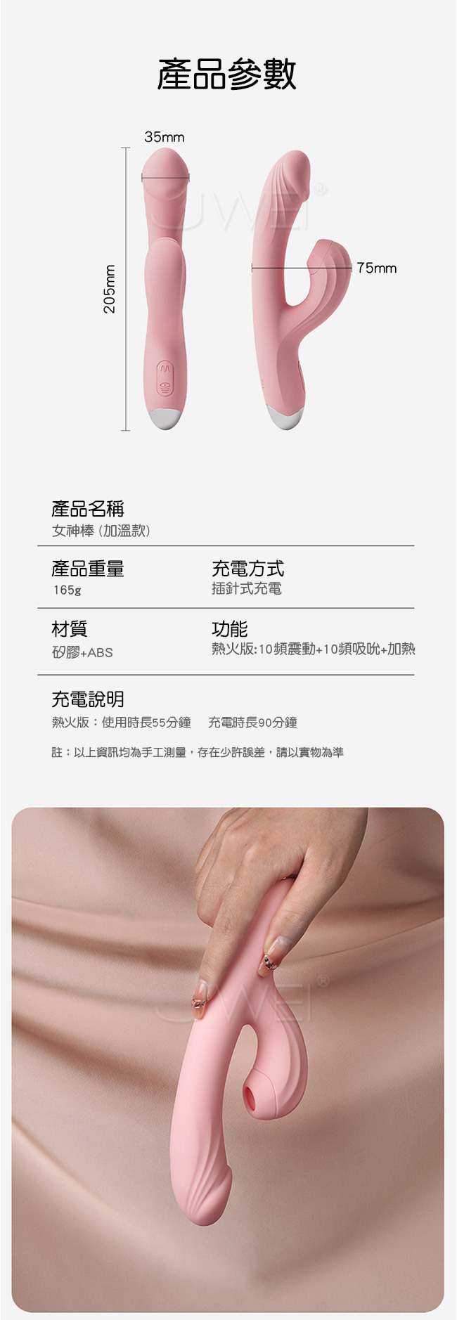 強震吮吸多重愉悅,撩撥蜜豆盡情歡愉,內外兼攻,暗自激爽;內外高潮三重奏,蜜豆高潮雙重奏舌舔+吸吮蜜豆,第三重高潮,G點摩擦,讓高潮的可能性多了不只一點點, 仿真體溫暖暖更舒服,舒適進去,柔軟觸感,緩解第一次的緊張;一體包膠防水設計輕鬆水洗。