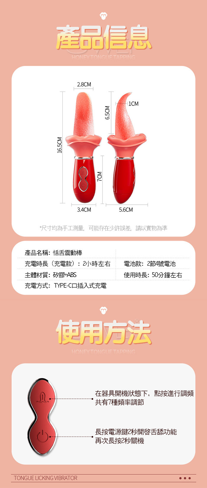 恬舌.7段變頻G點蜜舌拍打舔舐按摩棒-USB充電款