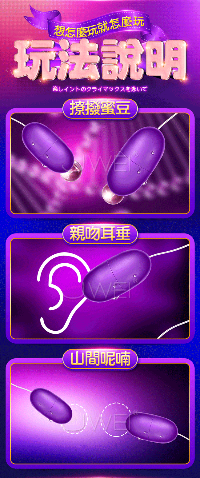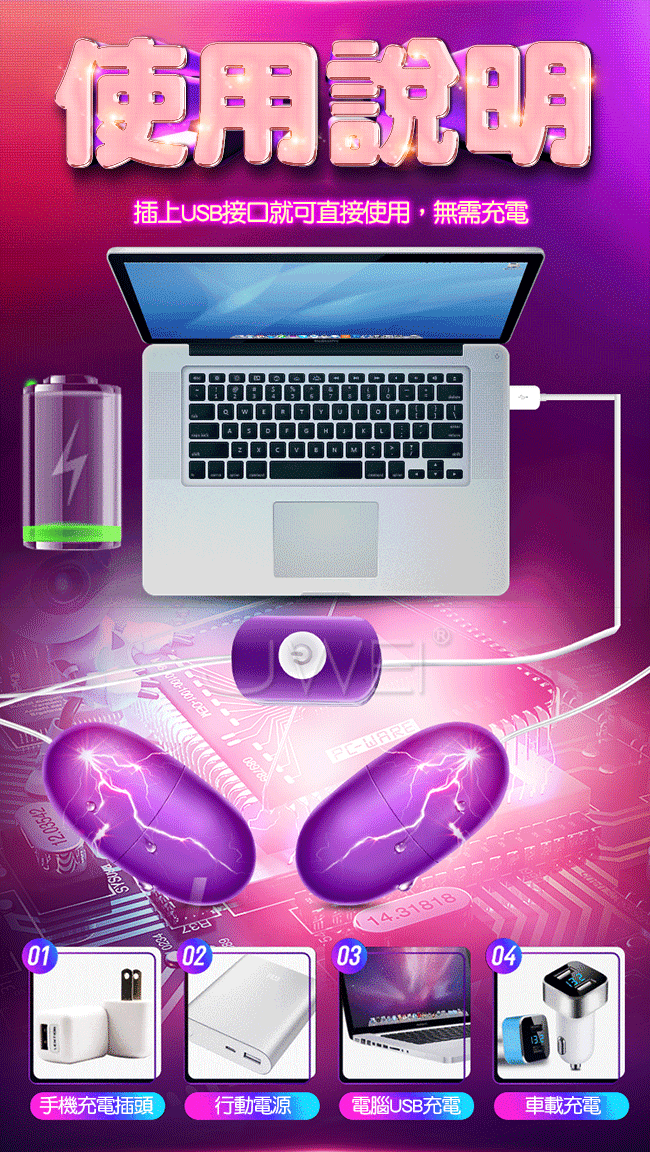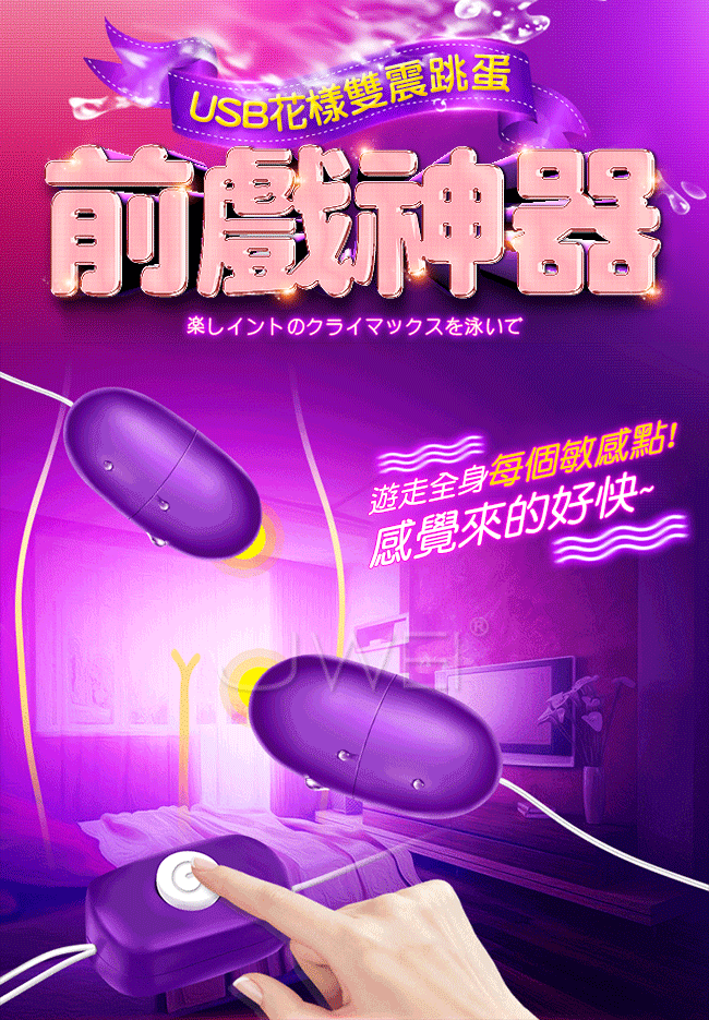 遊走全身每個敏感點,雙跳刺激,高頻馬達,刺激私處每個細胞,讓高潮更猛烈。插上USB接口就可直接使用,無需電池。