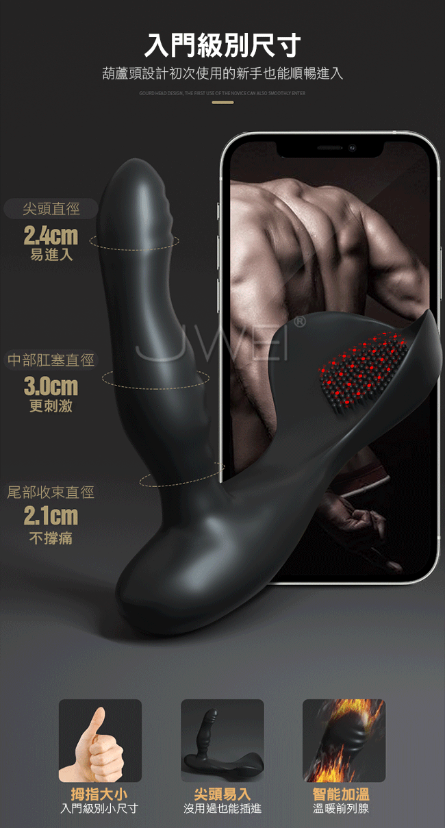 創新拖蛋包裹震動玩法,七頻變換強震,深入振動按摩,一物多用更爽更來勁。靜音設計,智能加溫,生活防水,USB充電,入門級別尺寸,葫蘆頭設計初次使用的薪水也能順暢進入,符合亞洲男性人體生理結構設計,流線造型輕鬆滑入後庭,來一場酣暢淋漓的快感。