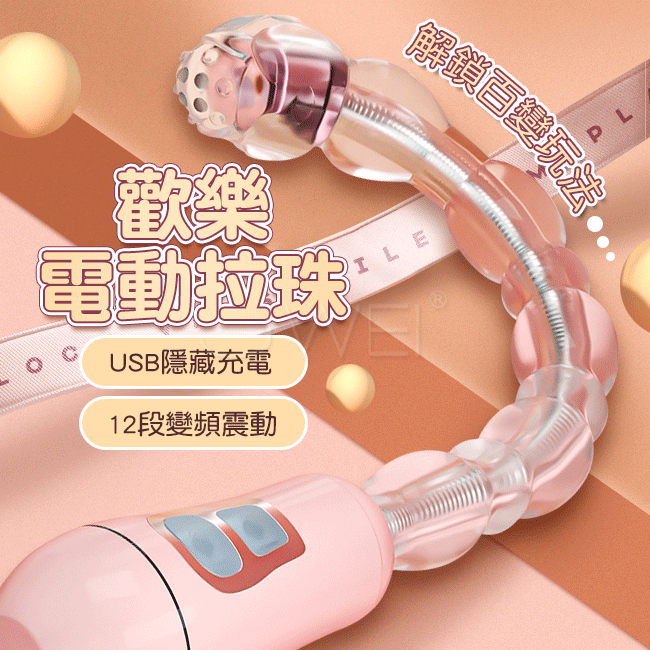 歡樂.12段變頻隨意彎曲震動拉珠後庭塞(USB充電款)