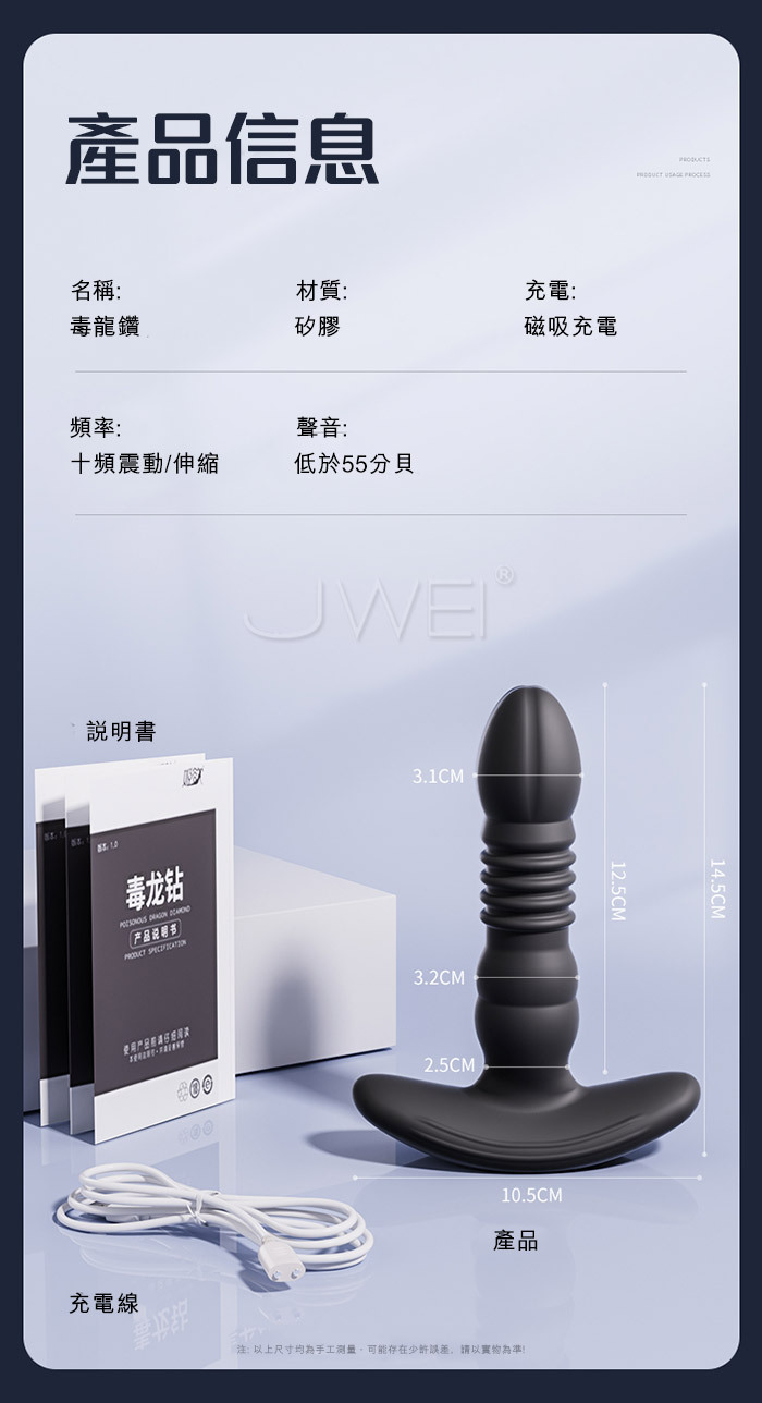 毒龍鑽II.10頻酥麻強震伸縮衝撞異地遙控肛塞