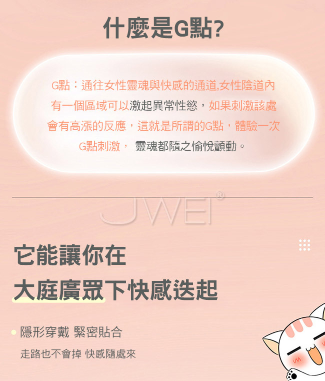 ■功能:10段變頻震動、無線遙控、隱形穿戴