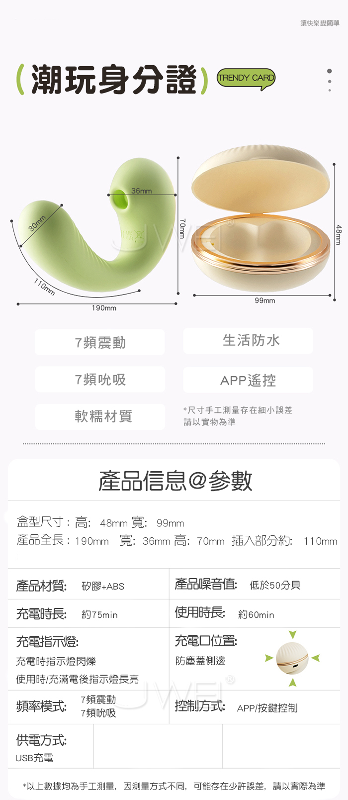 ■功能:7頻震動、7頻吮吸、APP遙控、生活防水