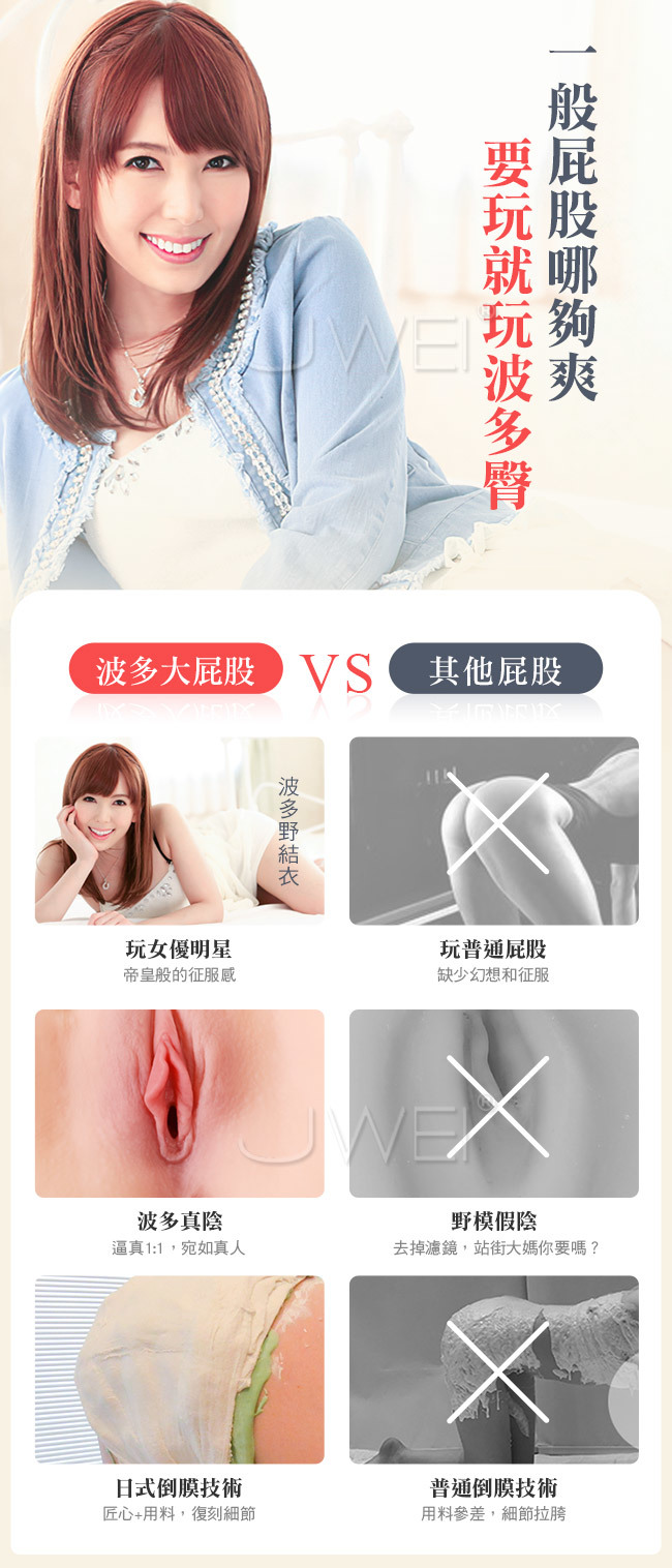 波多大屁股全陰臀倒模讓您幹到真的波多野結衣!!1:1真人複製倒模,真實複製波多美臀,從內到外那翹挺的美臀蝴蝶型蜜道,從愛的撫摸到誘惑的聲音都與本人無差。採用親膚材質,收縮力與柔軟性極佳,一進去就吸住肉感十足,抓上去又軟又滑讓您異常刺激。擁有真人智能互動發聲你瘋狂動她刺激叫多種情景互動任您選擇喔!高度還原前後雙穴採用內視鏡全息探測3維曲線建模,給您最真實的波多野結衣。