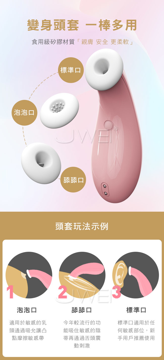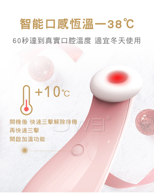 ■特色:4頻吸吮模式、6頻震動模式、1鍵暴走功能、底座抑菌加溫模式、流光夜燈