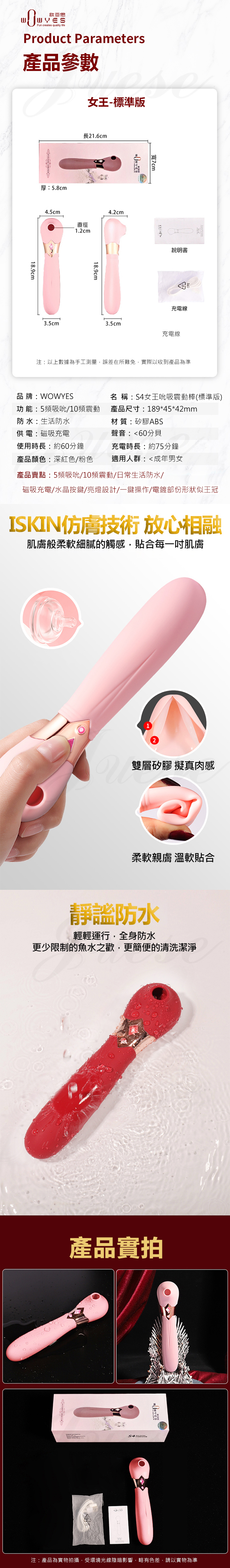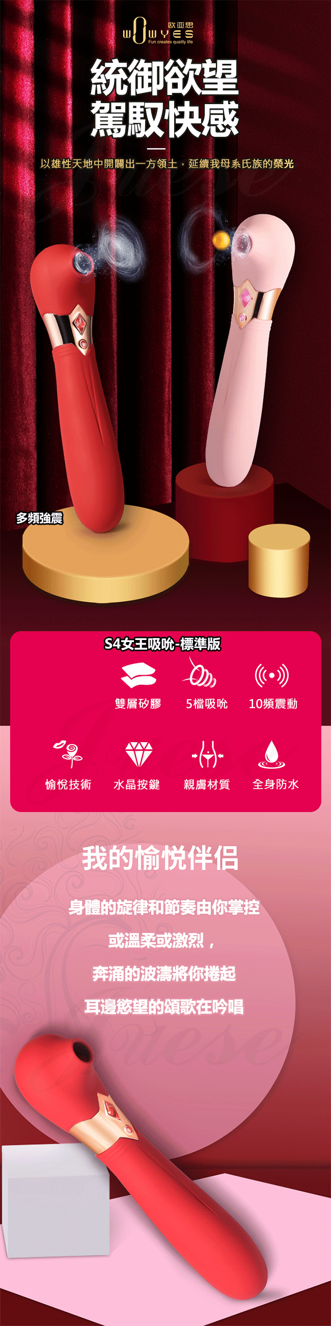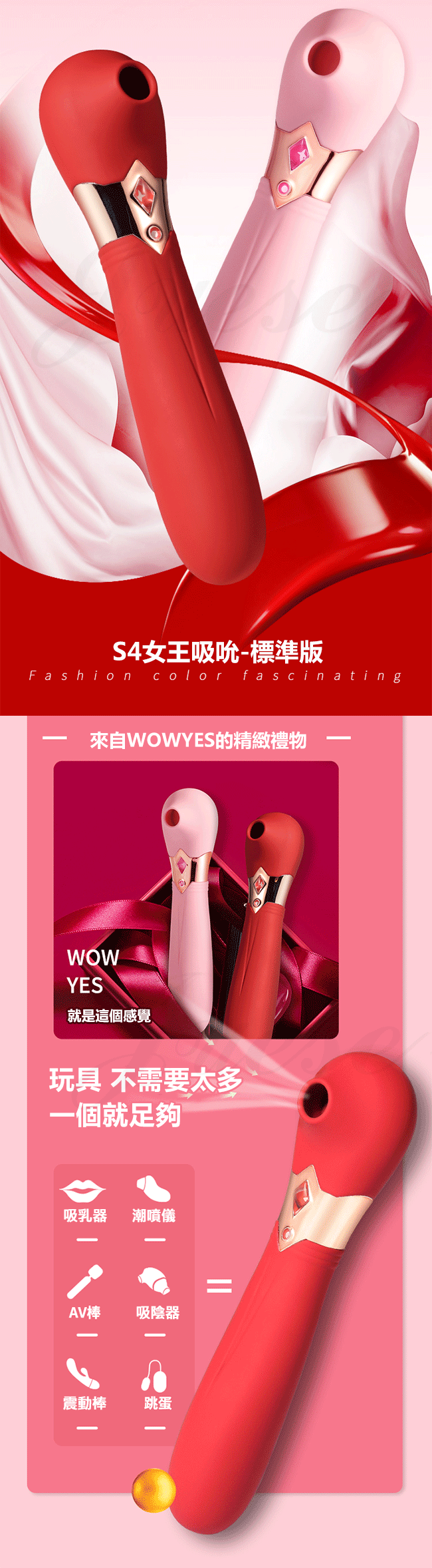 S4女王 5頻吸吮x10頻震動唇舌快感矽膠按摩棒-粉-標準版