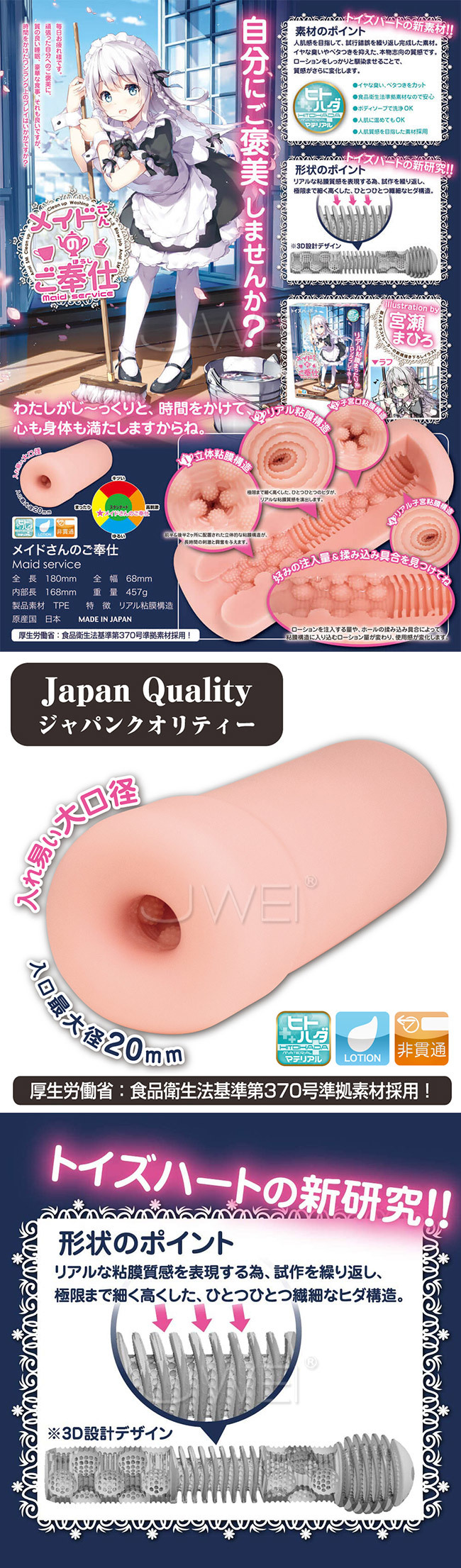 日本原裝進口TH.Maid Service女僕的服務 折疊結構3D入口通道自慰器