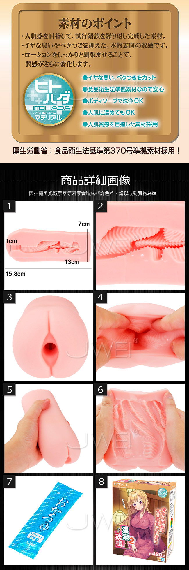 高山系ボテヒダ内部構造のゾリゾリ感をばっちり感じる人気シリーズの第二弾です。 至れり尽くせりの快感的出会いに酔いしれたい方にオススメな温泉欲情2は、太めのヒダヒダが施されているホールで、穴の形状自体が複雑なので、なんとも言えない不規則な刺激が楽しめます。 手厚い密着感、凸の効いた先端がスジまで刺激、よりよく絡みあうホール最奥部。