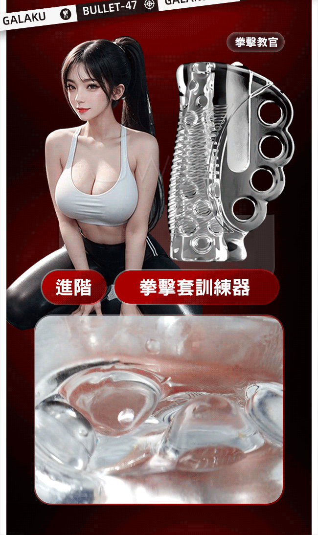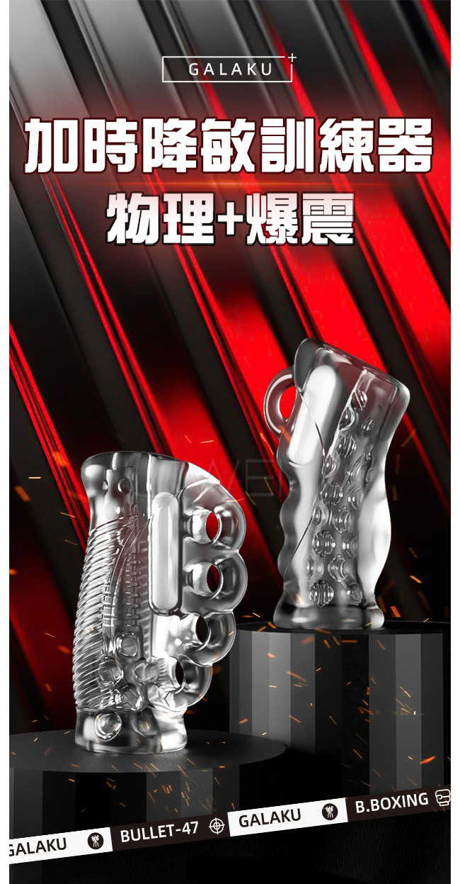 加時降敏訓練器,拉伸鍛錬,練出獸性做久挺男人,循序漸進的頻率,強 烈旋轉對根進行多頻,漸進拉伸,使根部整體得到充分舒張和鍛煉,有助 於莖部長-粗-大-頂。柔軟膠體,厚實肉感彈,Q彈通透,柔軟不易出油, 強拉不壞,柔韌膠體真實肉感;強震子彈頭,入體穿透直接,只需點擊直 接強震,穿透身體內部感知體驗更佳;內嵌式波震,模擬深喉巨震,電流 穿過般酥麻快感席捲全身!
