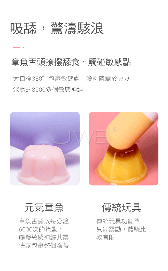 讓您元氣滿滿的新體驗,玩法不止吸吮為C點、G點高潮而生,章魚舌頭撩撥舔吸,觸碰敏感點,喚醒隱藏於蜜豆深處的敏感神經。擁有10頻脈衝自動抽插,如做活塞運動般,給於最大的快感體驗。一鍵快速升溫,讓您感受到人體溫熱的時候模擬真實溫度。