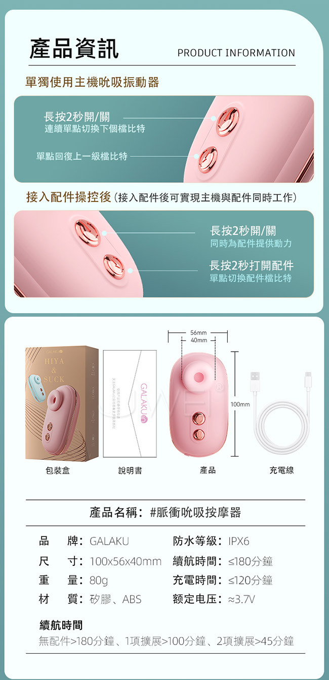 ■特色:10頻震動、10頻吮吸、低噪輕音、生活防水