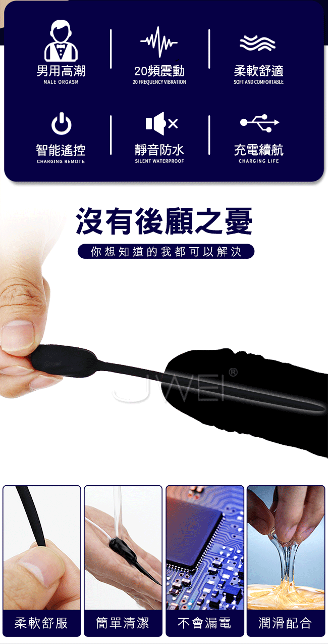 將馬眼棒慢慢往裡插直抵住了尿道深處這阻力代表到達前列線的位置,試著稍微用力在向下插入就可順利通過前列線了,並且來回抽插導尿管體驗強列的快感,擁有超級靜音20頻變頻震動給您帶來全身酥麻的快感,搭配長達1米的跳蛋線且韌性強勁,不怕斷掉讓您愛愛不在卡卡的束縛著您。採USB充電功能讓您可隨處充電方便使用續航便利喔~