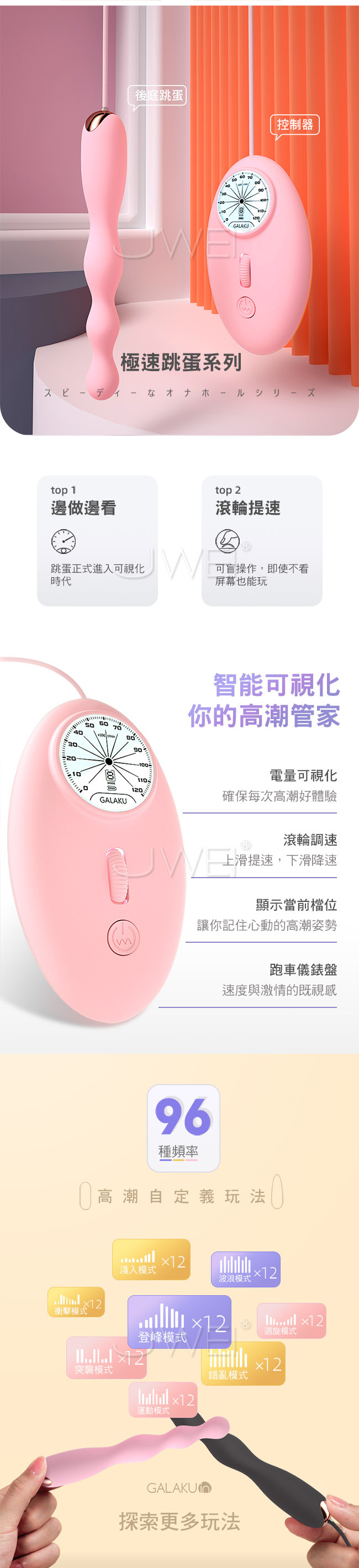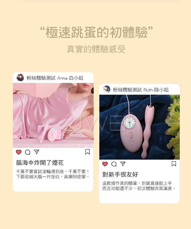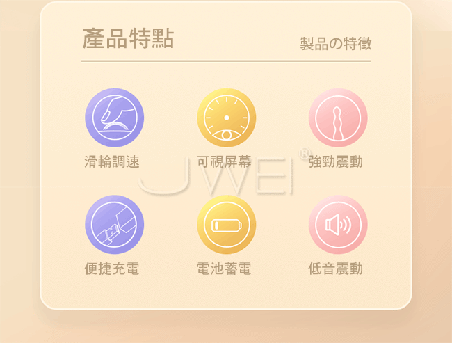 極速跳蛋系列讓高潮正式進入可視化時代,滾輪調速可盲操作,即使不看屏幕也能玩,上滑提速,下滑降速。如跑車儀錶盤速度與激情的既視感。跳蛋本體生活防水,可短時間在水裡浸泡和流水沖洗。使用低噪音震動馬達,夜深人靜中使用安靜不吵鬧,不怕鄰居聽見。