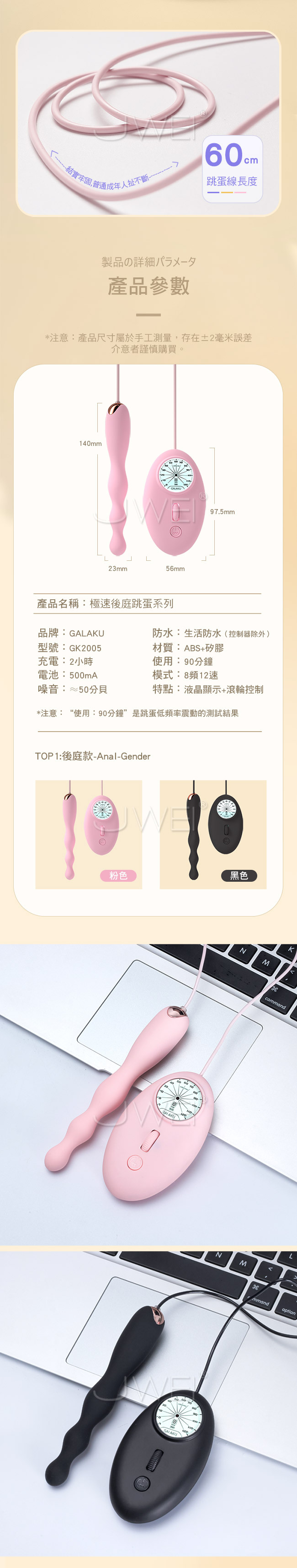 GALAKU.12速8頻極速防水後庭按摩棒-黑色