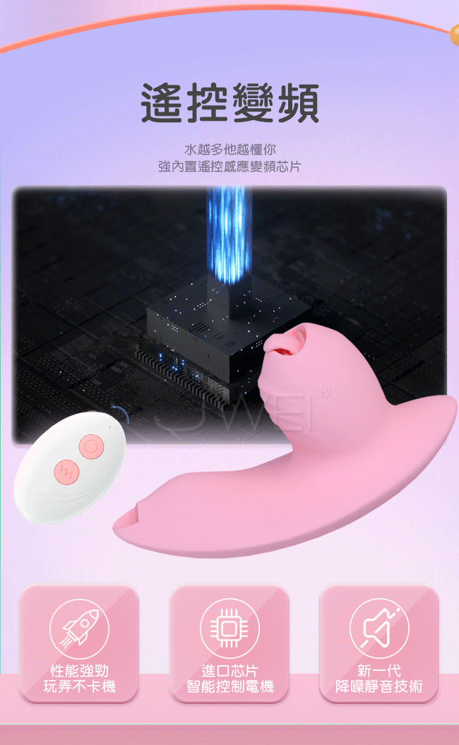 三重潮爽,吸吮+舌撩+震陰,強撩刺激下潮水來得又快又爽,從漣漪到狂潮, 10頻震動帶你快速高潮;內置遙控感應變頻芯片,性能強勁,玩弄不卡機,新一代降噪靜音技術,靜音強震,只聽見你的呻吟。