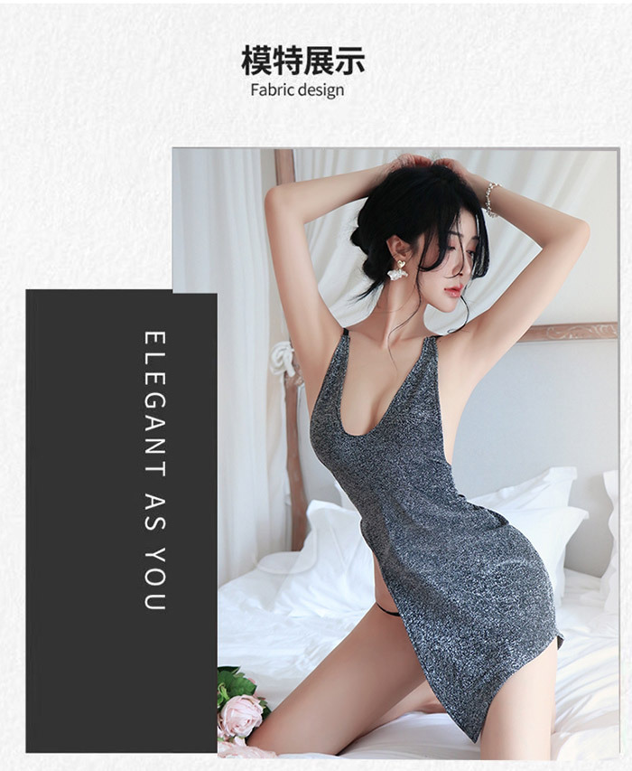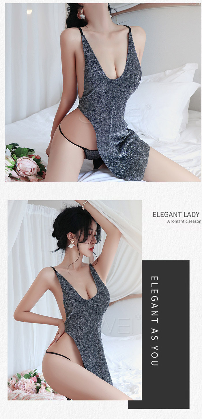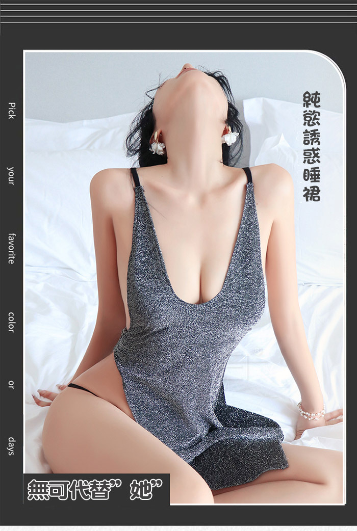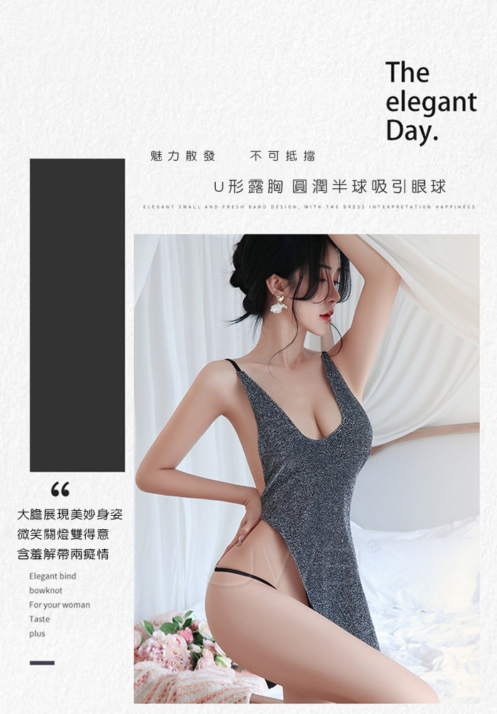 ◇◆暗香浮動.純慾深U露胸側腰開叉吊帶連身睡裙(粉色)◆◇
