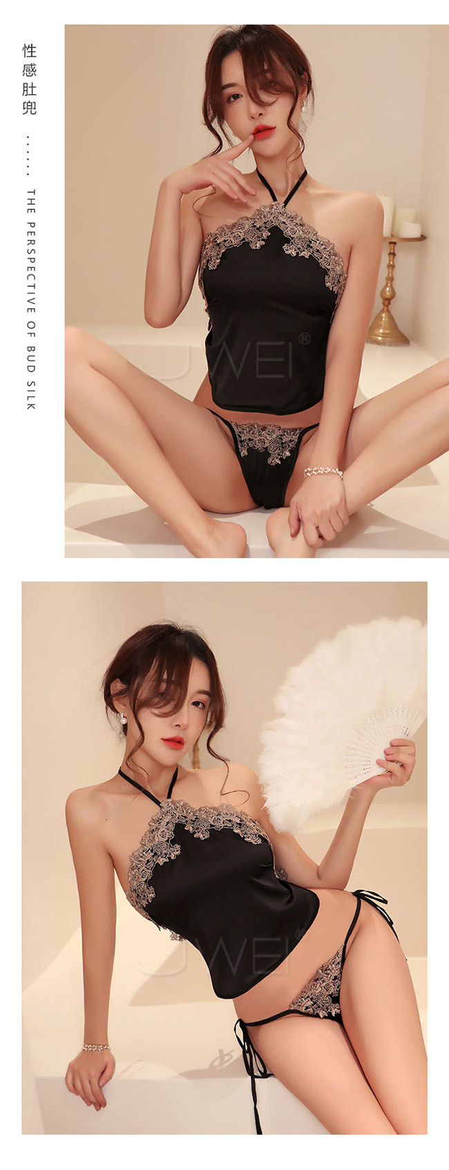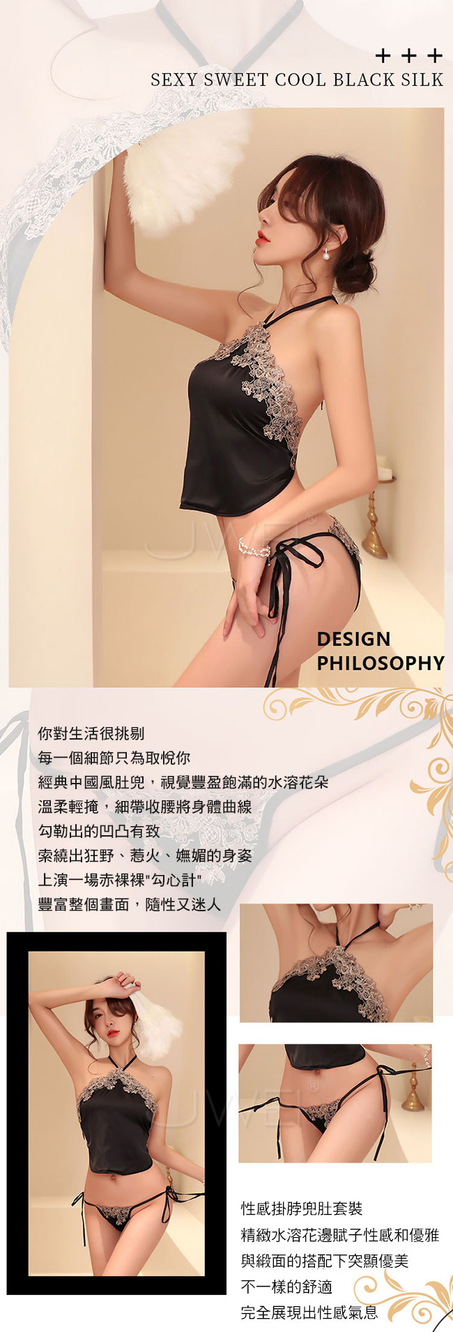 風華絕代.精緻刺繡花邊性感掛脖肚兜套裝2件組(黑色)