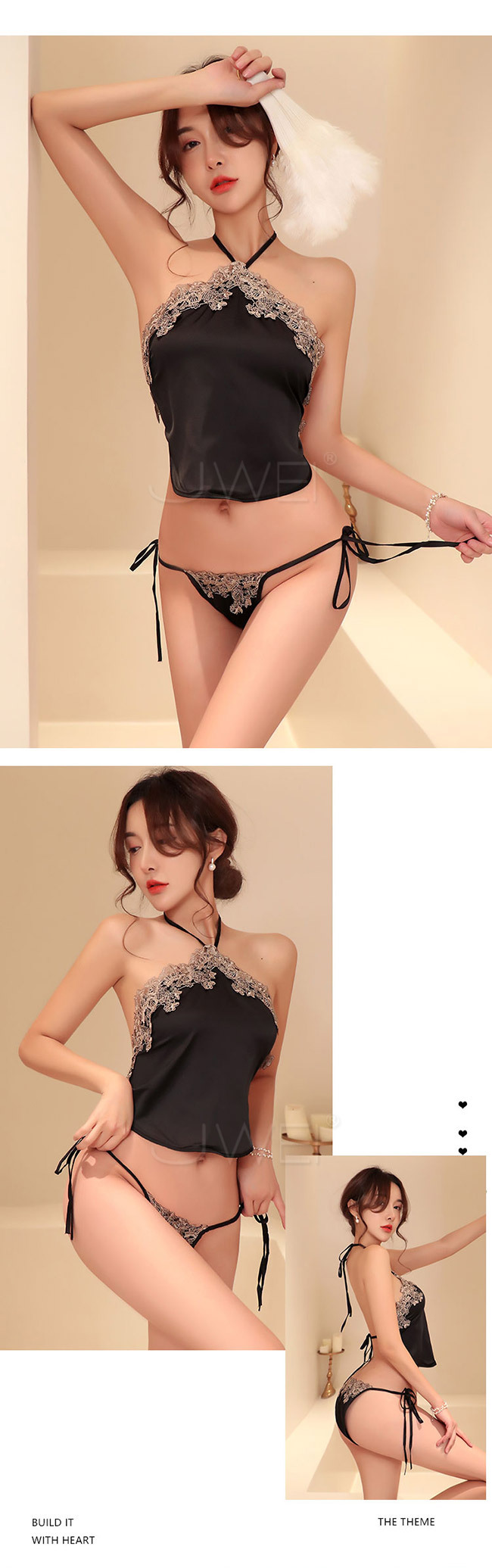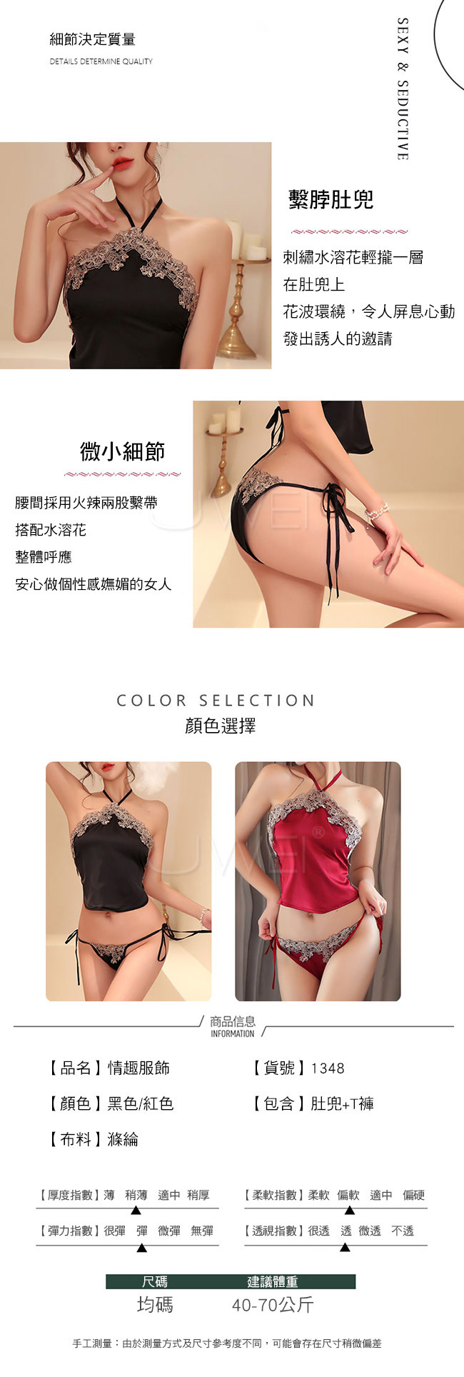 ◇◆風華絕代.精緻刺繡花邊性感掛脖肚兜套裝2件組(黑色)◆◇