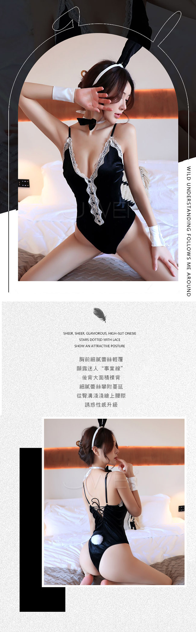 ◇◆蜜桃魅影.性感蕾絲深V露背側高叉兔女郎連身衣4件組(粉色)◆◇
