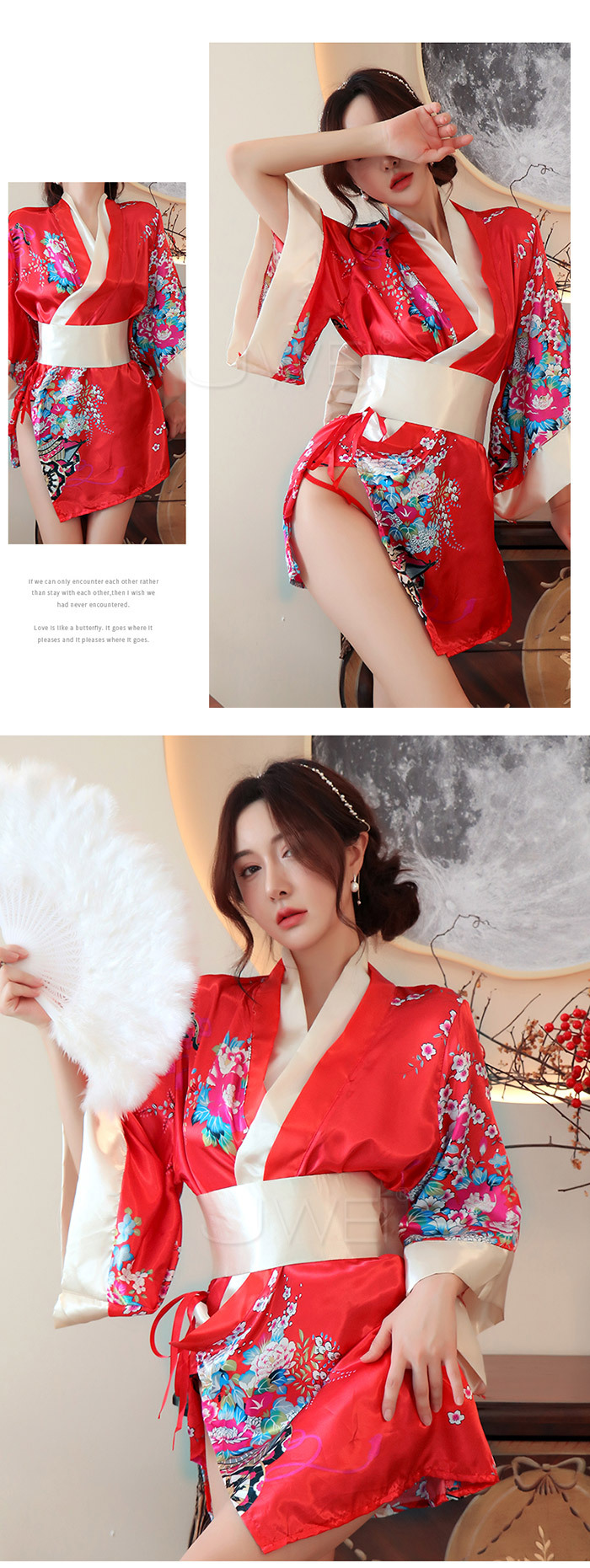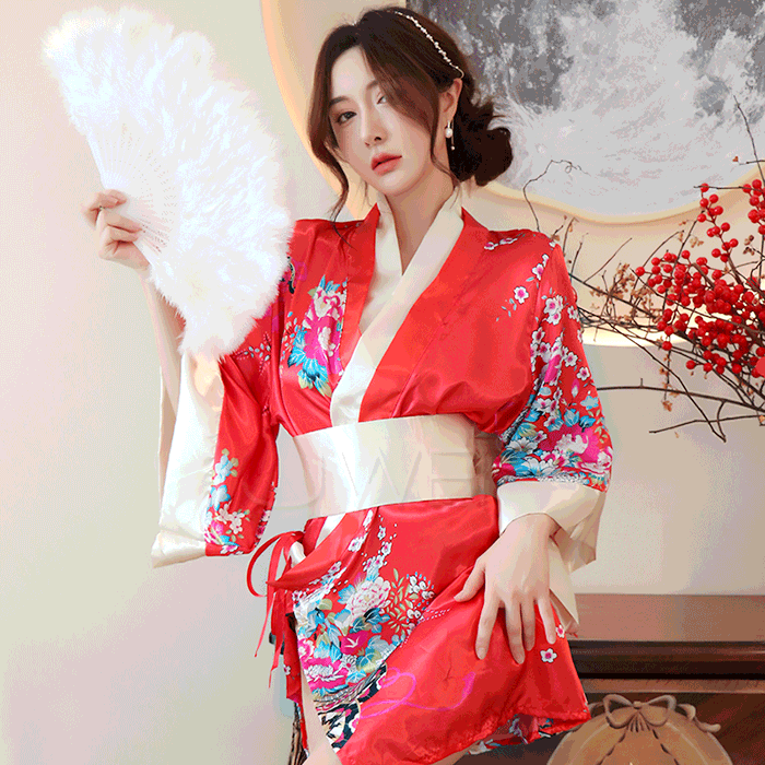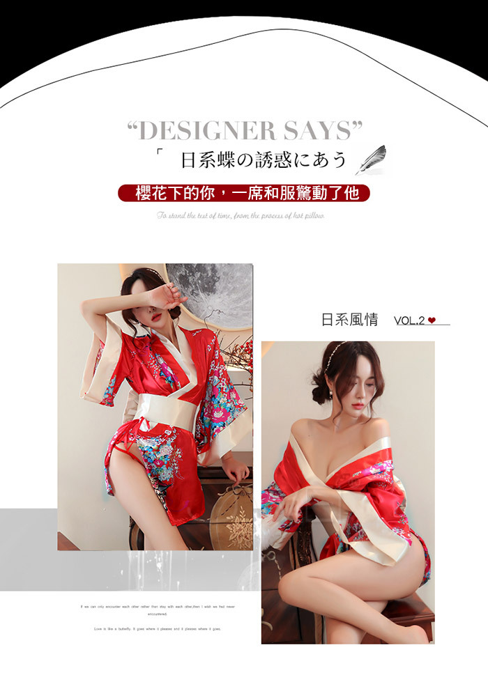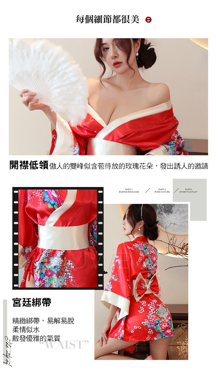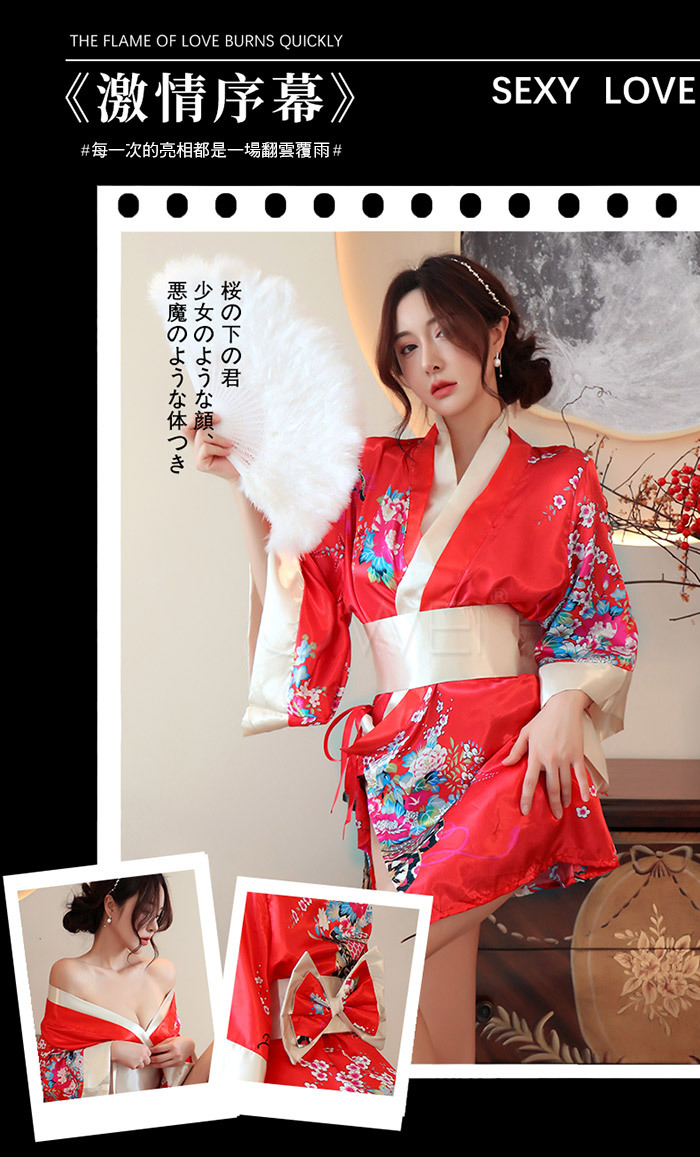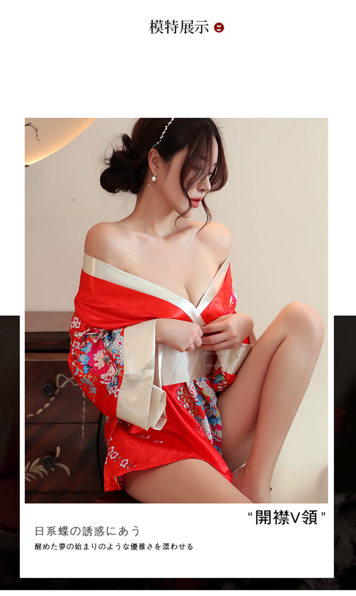 ◇◆花莎情露.性感誘惑開襟V領印花日式和服套裝3件組(紅)◆◇