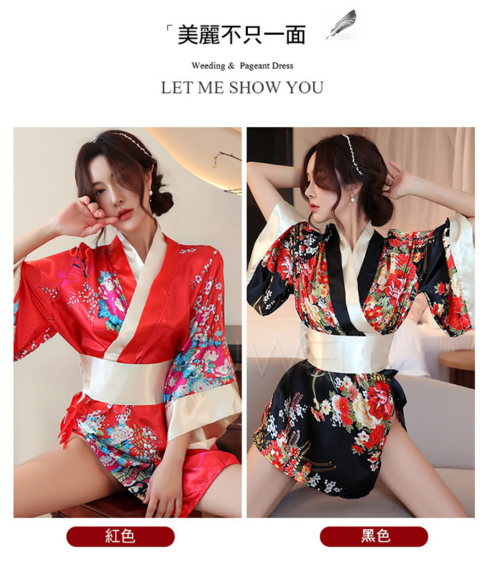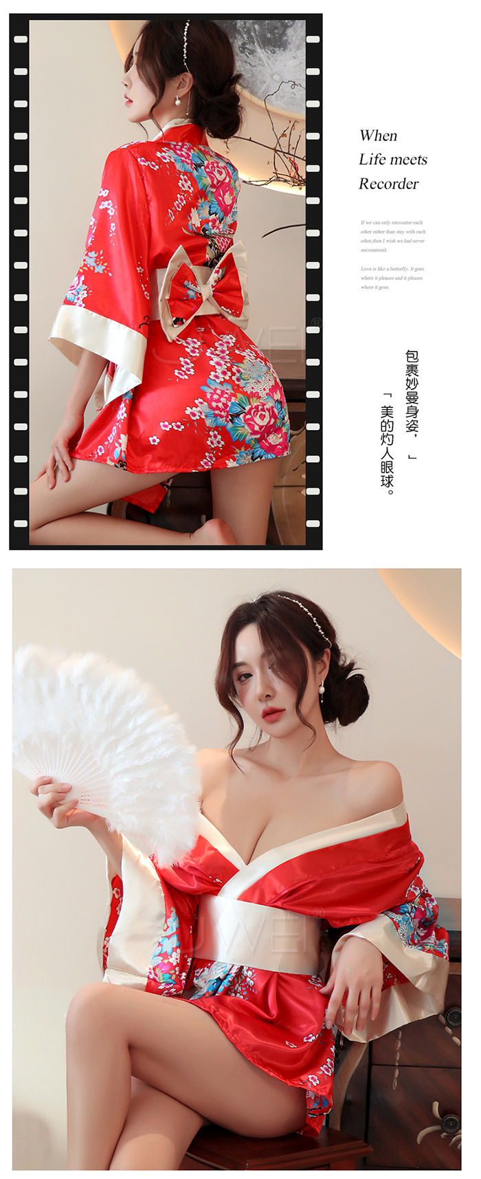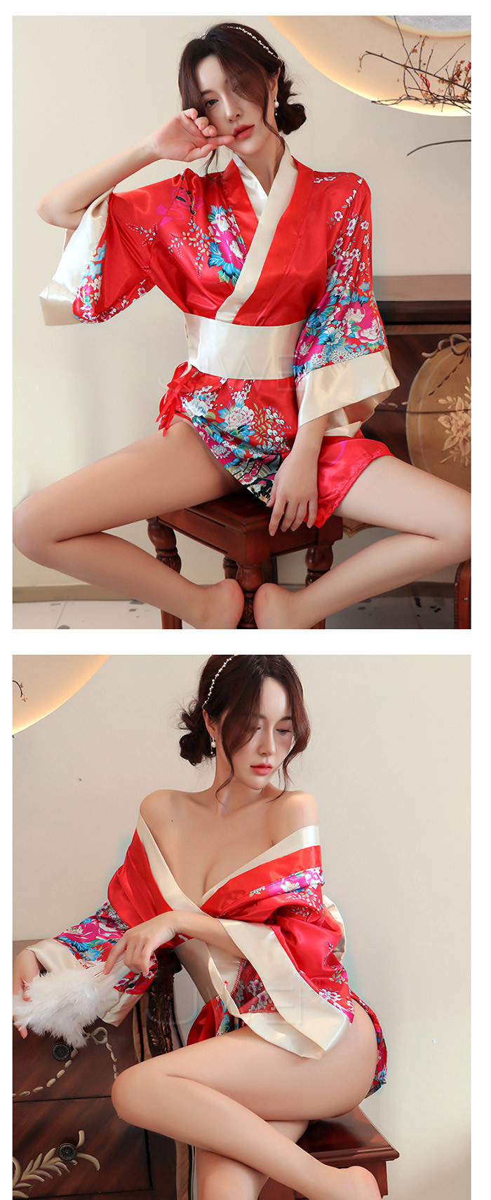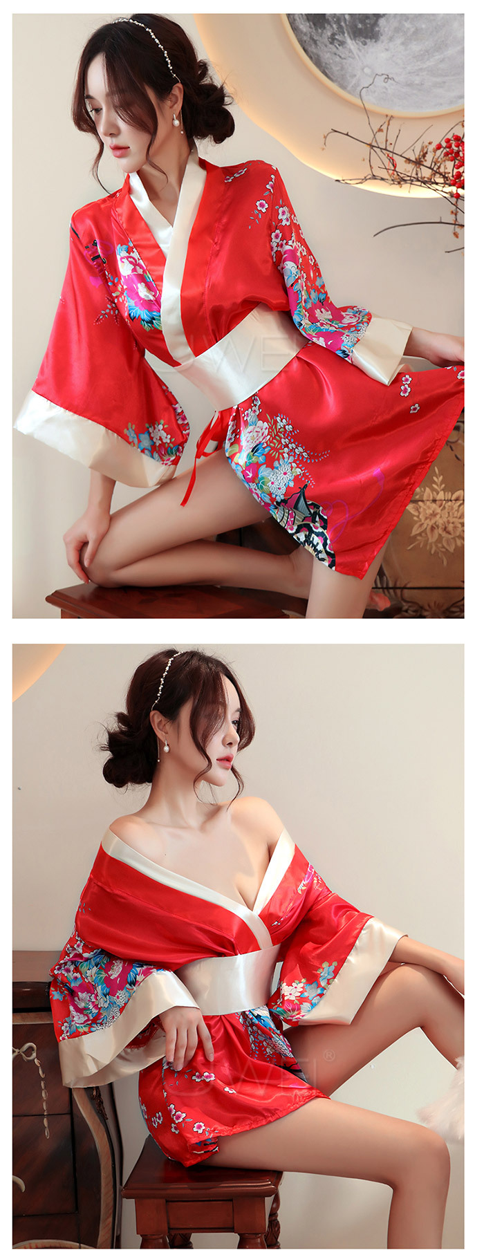 ◇◆花莎情露.性感誘惑開襟V領印花日式和服套裝3件組(紅)◆◇